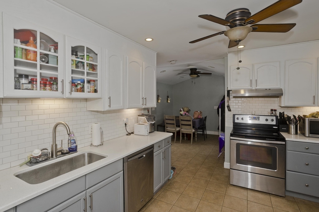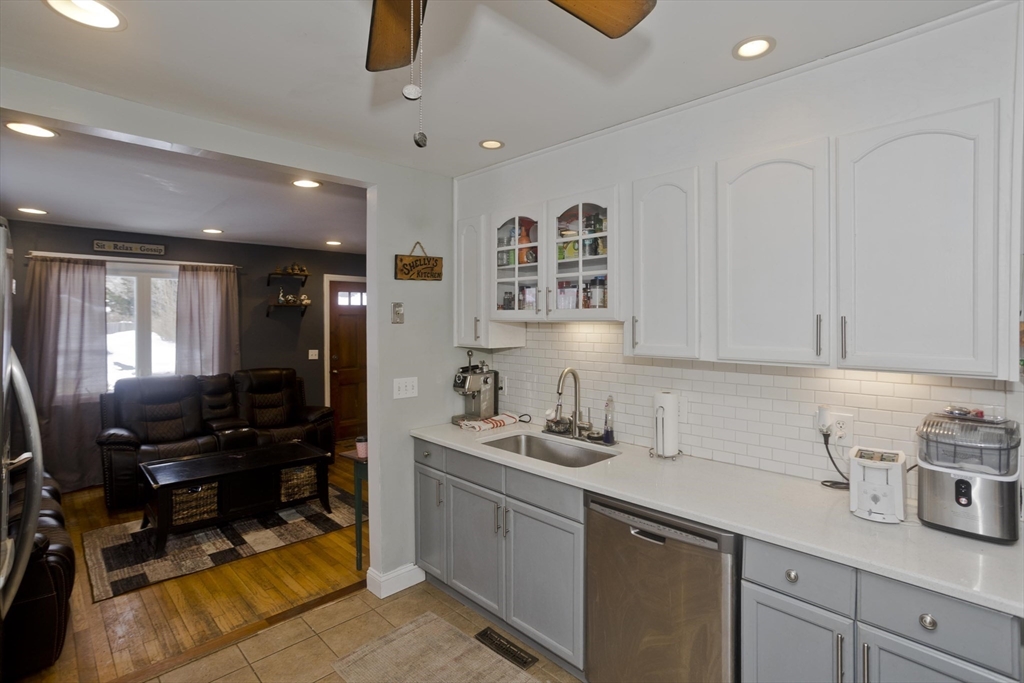 Look no further, the perfect ranch style home on a corner lot in desirable East Longmeadow is ready for its new owners! Enter into an open floorplan with hardwood flooring and plenty of natural light. The updated kitchen features quartz countertops, subway tile backsplash, stainless appliances, and ceramic tile flooring that opens into the dining area with a vaulted ceiling! Down the hall are 3 bedrooms, each with hardwood flooring and good closet space. The full bath in the hallway has also been updated. The lower level offers even more finished space with a living area, gas fireplace, half bath, and an additional room for guests! Situated on a corner lot with a fenced yard and large patio area, perfect for entertaining! Additional features include vinyl siding, replacement windows, central air, lawn irrigation system, new roof and washer/dryer in 2024, & new water heater in 2025! Don't miss your opportunity to check out this amazing property, open house Sunday 3/1 from 12-1:30pm!