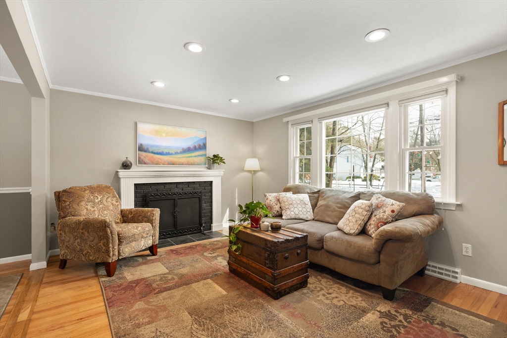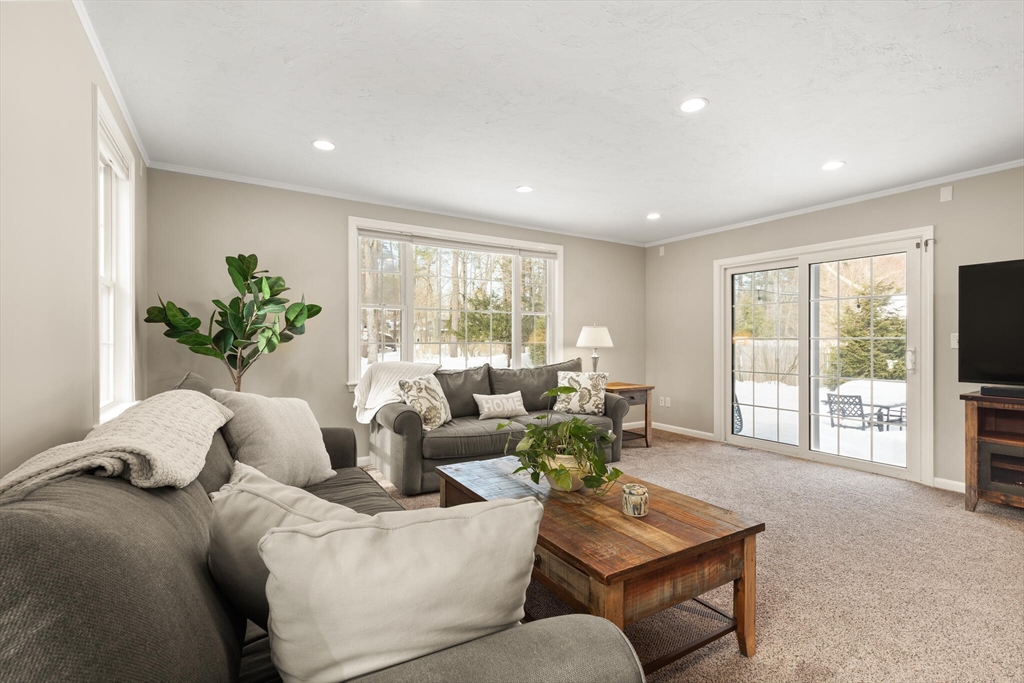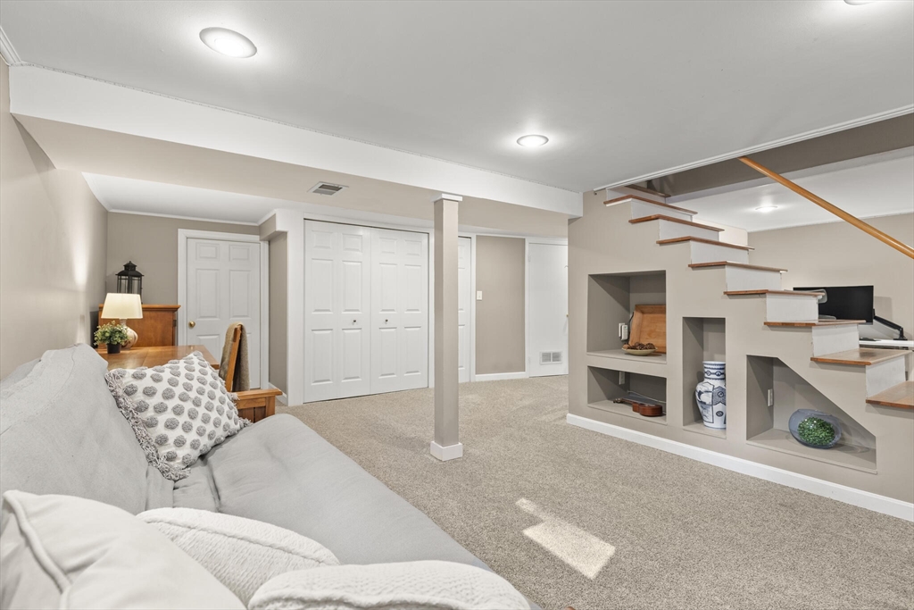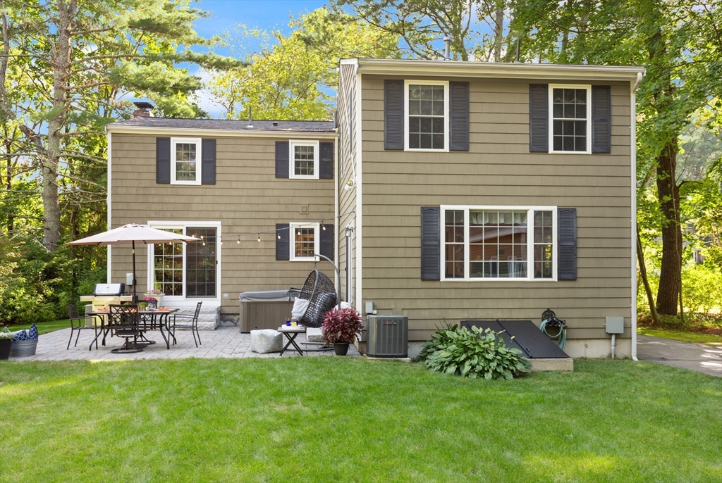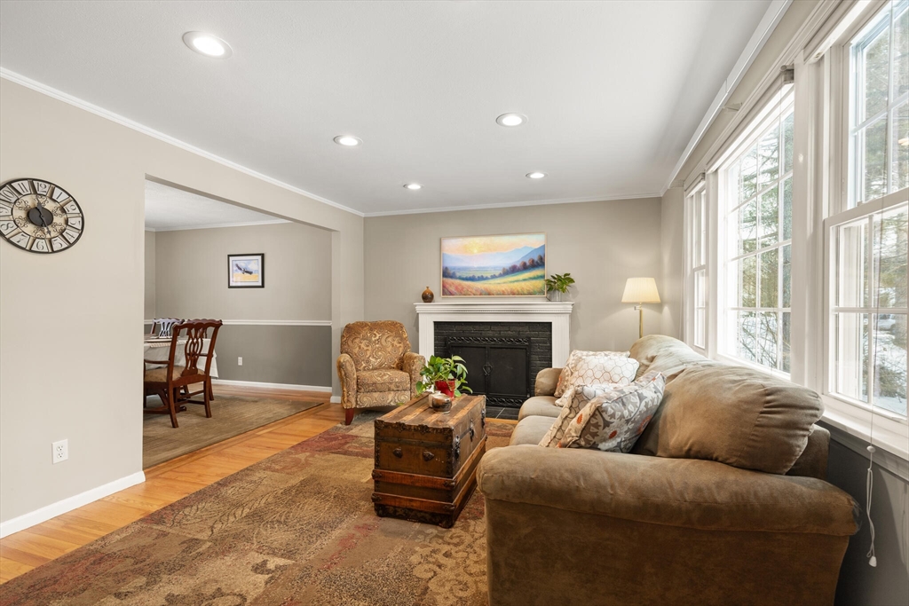 Beautifully expanded Cape offering 3+ bedrooms, 3 full baths & extensive updates thru-out. Nestled in a desirable neighborhood. This home is just a stroll to the end of the cul de sac where miles of conservation await exploration. A tiled mudroom w/ closet flows seamlessly into the kitchen. The spacious family rm features walls of windows, recessed lighting & slider to newer paver patio- perfect for indoor-outdoor living. The fireplaced liv rm adds warmth & charm, while the dining rm includes a closet & its own slider to the exterior. The primary suite boasts a walk-in closet & private full bath. 2 additional generously sized bedrms & an updated full bath complete the upper level. The finished lower level offers exceptional flexibility w/ a bonus room, office area, laundry room, cedar closet, possible 4th bed rm & abundant storage. Outside enjoy beautifully landscaped grounds w/ garden areas & paver patio ideal for relaxing or entertaining. Move-in ready & thoughtfully updated