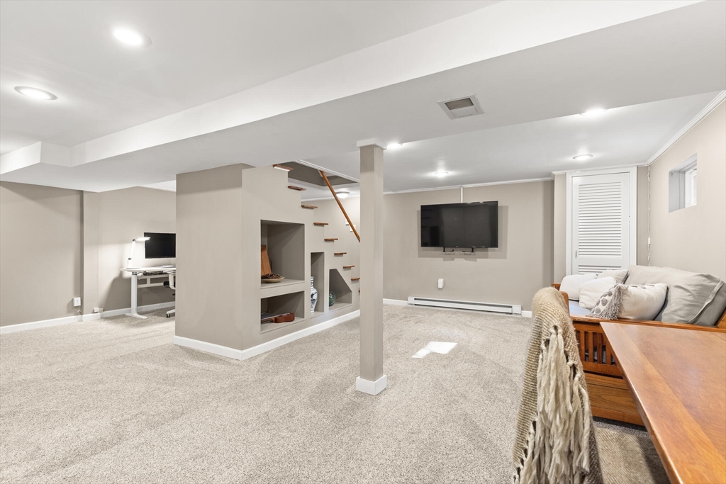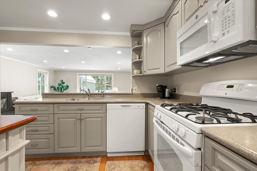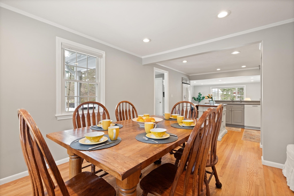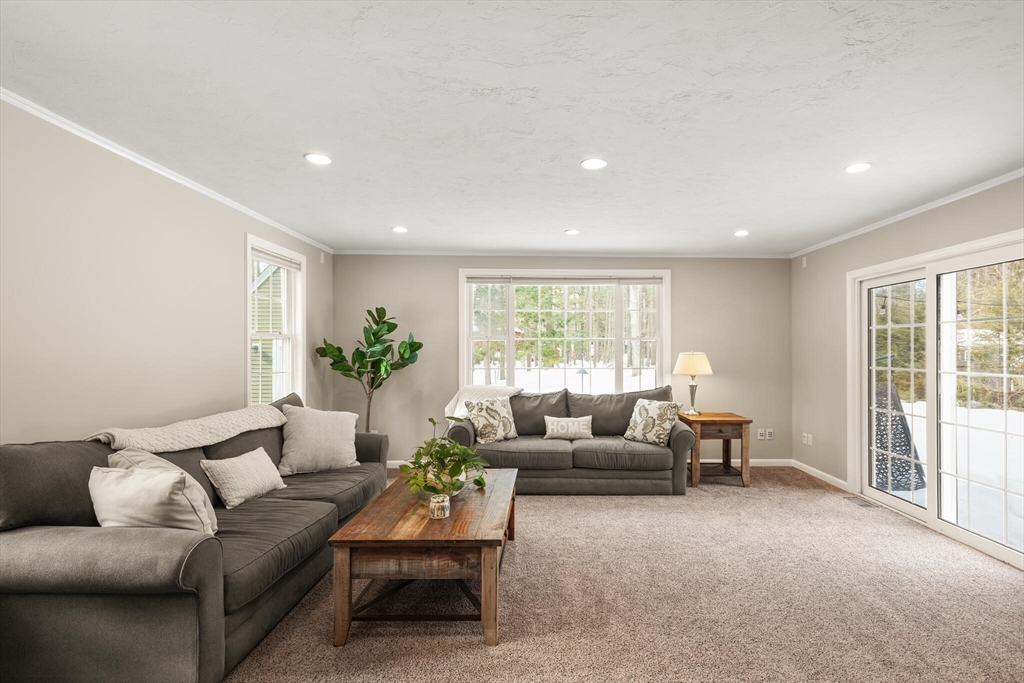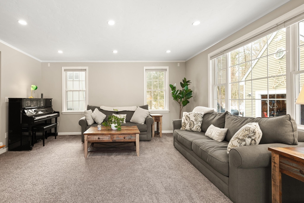 Beautifully expanded Cape offering 3+ bedrooms, 3 full baths & extensive updates thru-out. Nestled in a desirable neighborhood. This home is just a stroll to the end of the cul de sac where miles of conservation await exploration. A tiled mudroom w/ closet flows seamlessly into the kitchen. The spacious family rm features walls of windows, recessed lighting & slider to newer paver patio- perfect for indoor-outdoor living. The fireplaced liv rm adds warmth & charm, while the dining rm includes a closet & its own slider to the exterior. The primary suite boasts a walk-in closet & private full bath. 2 additional generously sized bedrms & an updated full bath complete the upper level. The finished lower level offers exceptional flexibility w/ a bonus room, office area, laundry room, cedar closet, possible 4th bed rm & abundant storage. Outside enjoy beautifully landscaped grounds w/ garden areas & paver patio ideal for relaxing or entertaining. Move-in ready & thoughtfully updated
