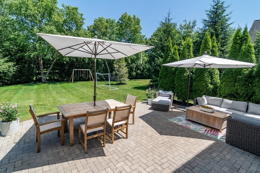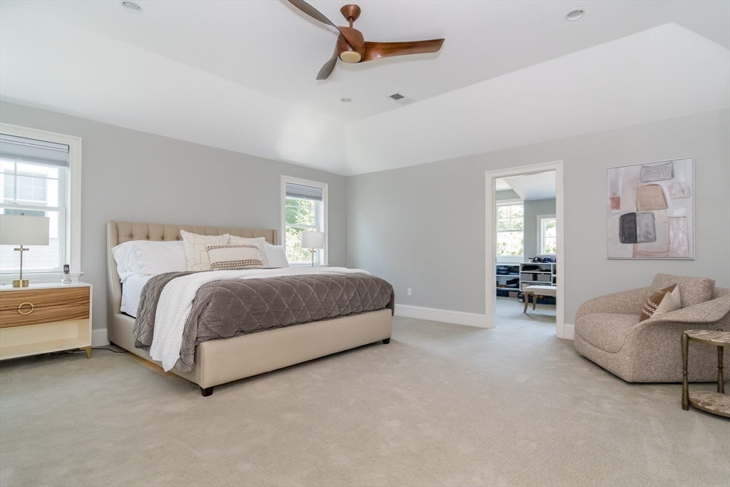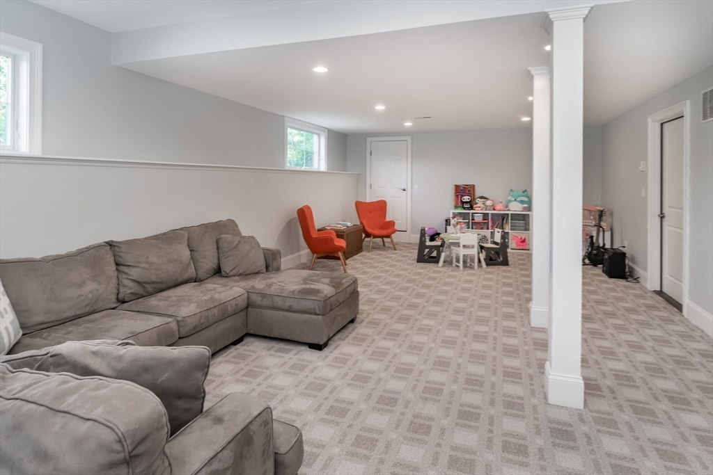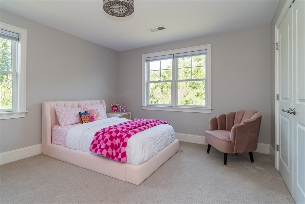 Welcomed by a beautiful covered bridge, this 2016 modern farmhouse offers over 4,500 SF of living space on a private, half-acre lot. The elegant open floor plan features 10-foot ceilings and tall windows that flood the home with natural light. A gourmet kitchen, boasting Thermador appliances, quartzite countertops, and an oversized island, walks out directly to a level backyard and stone paver patio. The heart of the home is the 27-foot family room with custom built-ins and a gas fireplace. The main level includes a flexible office or fifth bedroom with an adjacent full bath. Upstairs, the primary suite is a peaceful retreat with a second gas fireplace, spa-like bath, and a massive 16x8 walk-in closet. Three additional bedrooms provide ample space, while the finished lower level features a 36-foot game room, exercise area, and exterior access. Ideally located, this home is steps from Hamlen Woods and Mainstone Farm trails.