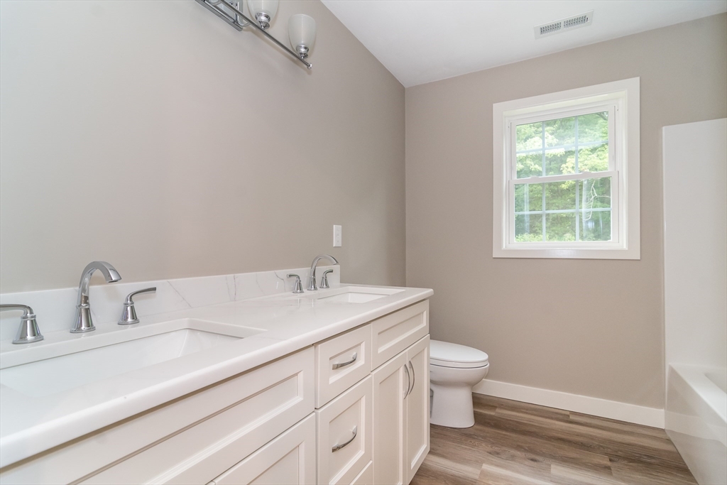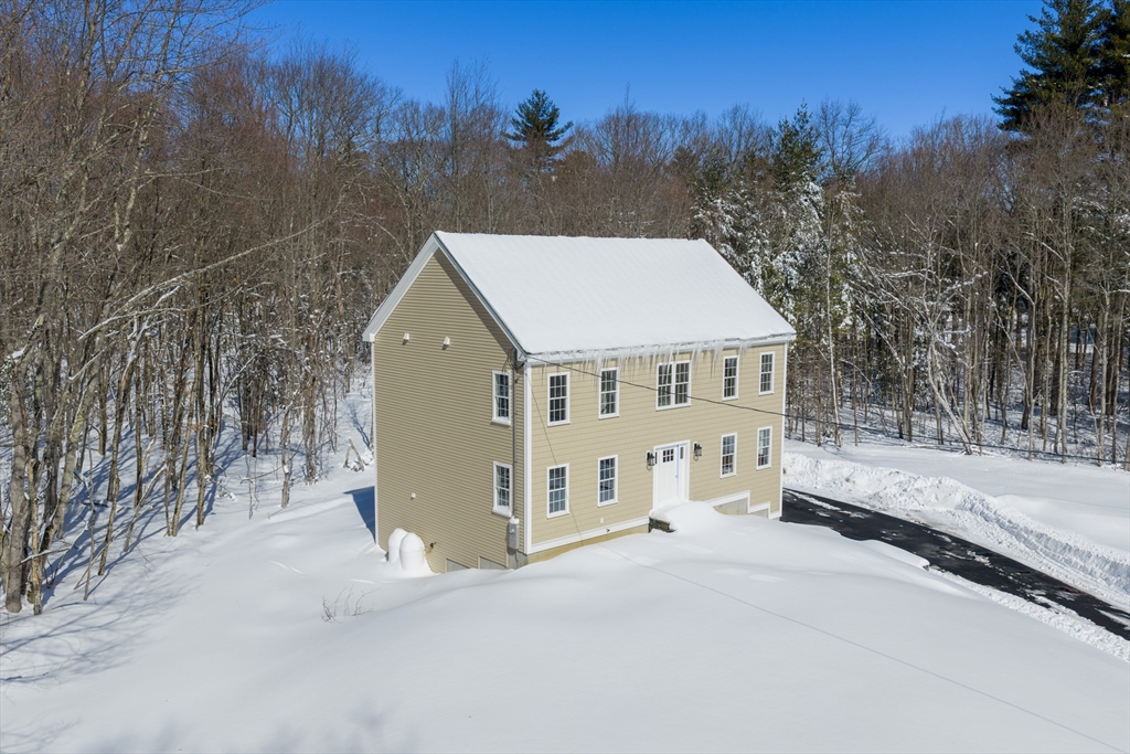 Welcome Home! This brand-new private Colonial blends timeless architecture with modern comfort, offering a perfect balance of elegance and everyday functionality. Situated on a 2+ acre beautifully wooded landscaped lot with exquisite stone walls close to trunk line trail.This well-built home features, front cedar shake vinyl siding, gleaming red oak hardwood floors that flow throughout the house. The heart of the home is the expansive kitchen, thoughtfully designed with quartz countertops, custom cabinetry, a large center island, stainless steel appliances. The kitchen opens seamlessly to a sun-filled family room creating a warm and inviting space for relaxing or entertaining. Upstairs, the spacious primary suite serves as a luxurious sanctuary, complete with a walk in closet. Spanning 2,240 of square feet with a quiet country setting yet close-to-town. Close to Rt.146, Rt.20, Rt. 395 and the Mass-Pike(I-90). Make your appointment today!