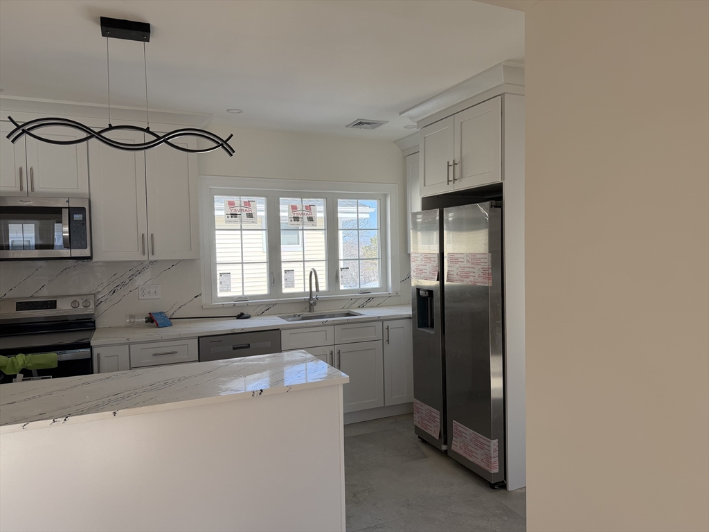 A rare opportunity to live just steps from Mound Street Beach, enjoy scenic water views and outdoor activities in nearby park, adjacent to the Town River Bay, all in the desirable Quincy Point Neighborhood. Virtually renovated inside and out, this well-appointed two-family home combines modern design with worry-free ownership. Brand-new vinyl siding provides durability and low maintenance for years to come. Inside, both units feature quartz kitchens, new energy efficient windows, stainless steel appliances, new hardwood flooring, and designer bathrooms. Additional highlights include separate utilities, private entrances, new heating and cooling systems, In-unit laundry, new and reconditioned layouts, bright and sun-filled in every room. Unit 1 features enclosed front porch, 2 bedrooms and 1 bath. Unit 2 boasts an open floor plan, 2 bedrooms and 1 bath, private deck and sunroom. Comes with tandem parking for 4-6 cars on driveway. No flood insurance required. What more do you need?