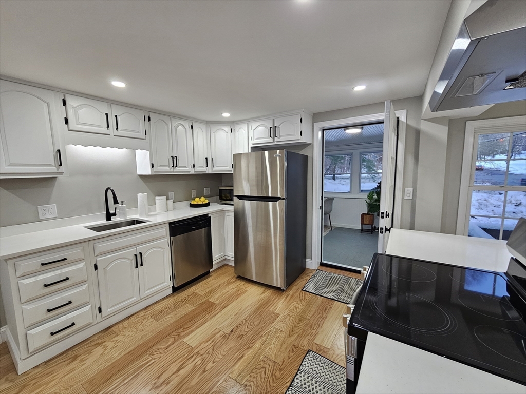 Welcome to 122 Chapin Rd, a stunningly completely remodeled 4-5 bedroom, 2 full bath home in a highly sought-after Hudson location! Step inside to discover gleaming hardwood floors and a breathtaking curved hardwood staircase. The spacious layout features a cozy working fireplace and a spectacular open-concept kitchen. This chef's dream boasts new top-quality stainless steel appliances, a sleek stove-top hood, and a fantastic oversized center island with a built-in stove. Enjoy relaxing on the awesome enclosed porches located on both floors! Major updates include new windows and flooring throughout, plus a high-end Buderus gas-fired boiler. Set on a massive, almost half-acre lot, the yard is an absolute oasis surrounded by a brand-new 6-foot vinyl privacy fence. Perfectly situated near schools, recreation, great restaurants, and shopping. This turnkey home has it all—schedule your showing today!