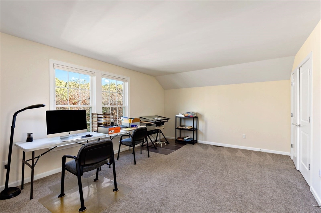 Welcome to Kensington in The Pinehills! This magnificent Noir Hill detached single-family home offers the perfect blend of elegance, comfort and easy living. Your kitchen features upgraded cabinetry, stainless steel appliances, cooktop, granite countertops & hardwood flooring, opening seamlessly into a gathering room and dining area with a cozy fireplace and slider leading to a private deck—ideal for indoor-outdoor entertaining. The first-floor owner’s suite is a true retreat, complete with a spacious walk-in closet, double vanity and a luxurious 6-foot tiled shower with frameless glass doors. Main level laundry room, guest bedroom, flex space/office, additional full bath and hardwood floors. The second floor provides a private escape for guests, featuring a spacious loft, a third bedroom, and full bathroom. Additional highlights include a two-car garage, full walk-out basement, composite deck, charming front porch & generator for peace of mind. Low HOA fees too! Come take a look.