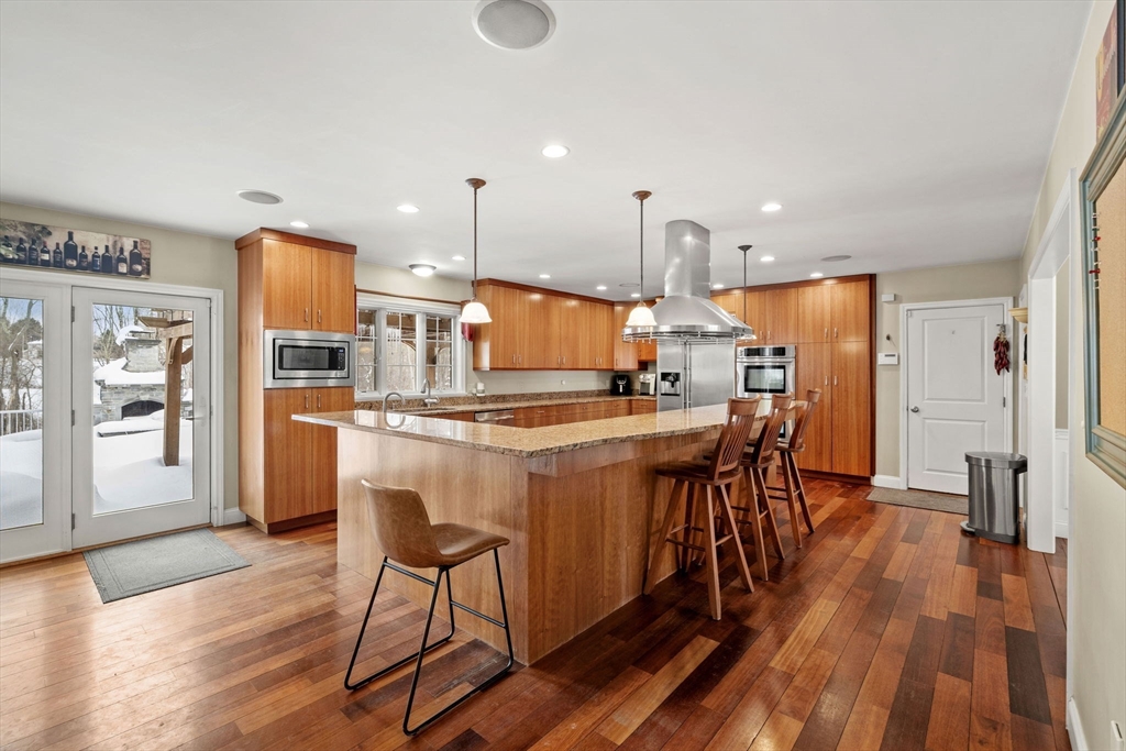 A truly rare offering—Two attached homes on 3 private acres. This remarkable property features two beautifully appointed homes, offering space to live together while enjoying independence and privacy. The main residence spans 3,600 square feet with 11 rooms, including 5 bedrooms and 3.5 baths, complemented by a sunroom, screened porch, and a two-car garage. The second home offers 2,000 square feet with 6 rooms, two primary bedroom suites on the 1st & 2nd floors, a sunroom, deck, and its own garage—perfect for guests, long-term stays, or added income potential. Outdoors, the grounds feel like a private resort: an in-ground pool with water & lighting features, a fireplace, decks, pergolas, and peaceful spaces to gather or unwind, all surrounded by nature. Tucked away on a quiet side street, this property offers both tranquility & convenience, with quick access to commuter routes and the charm of the coastal downtown of Newburyport, commuter routes & Pentucket School just minutes away.