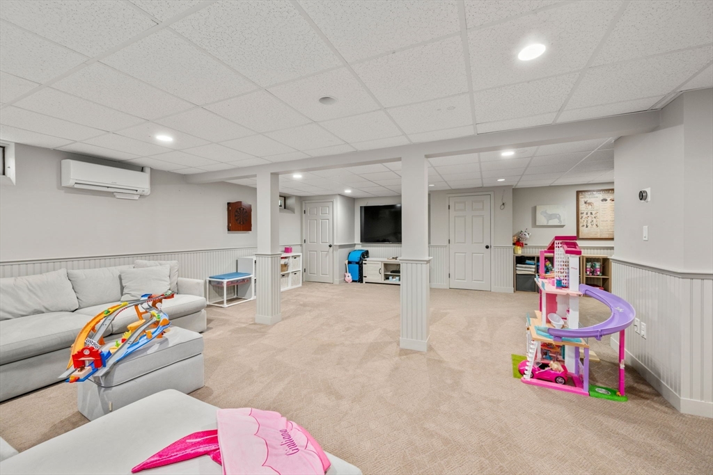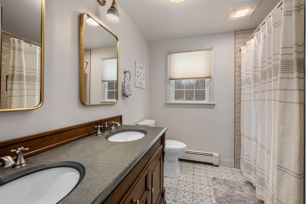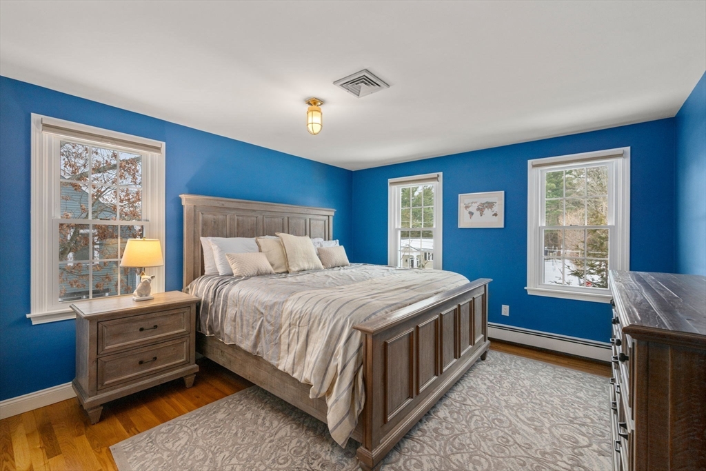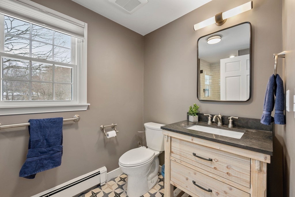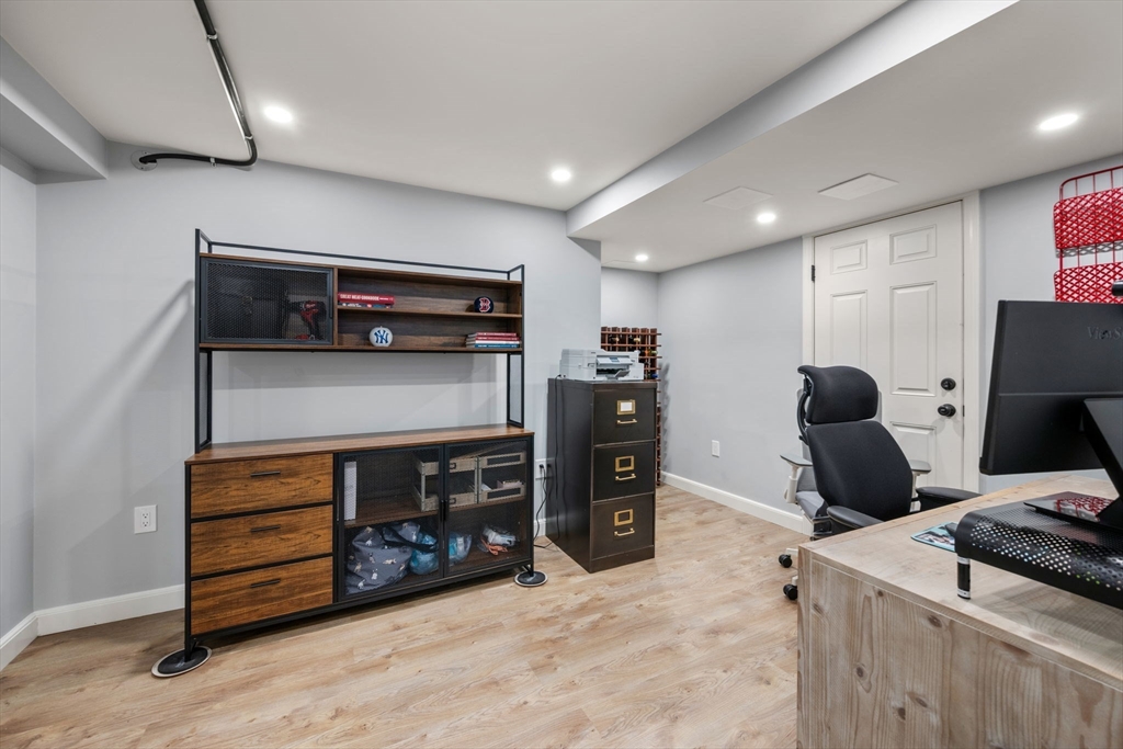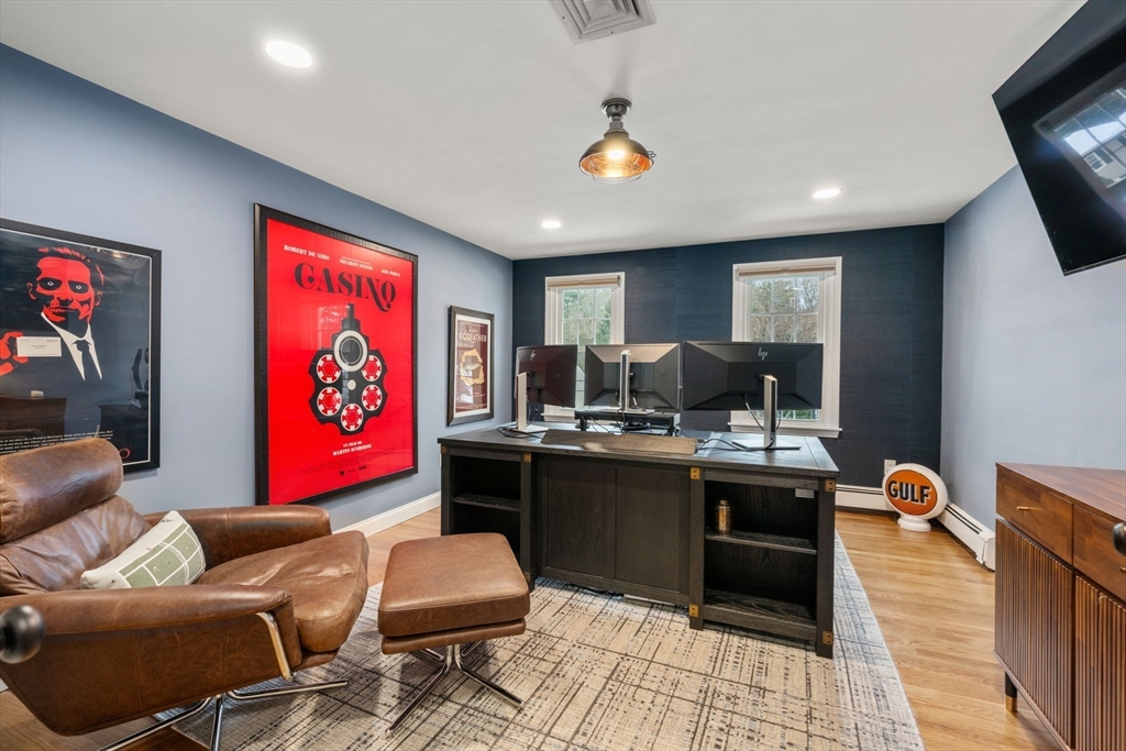 This thoughtfully renovated home is move in ready to enjoy. Contemporary in style with a spacious and bright floor plan. Level backyard offers an inground heated pool and newly fenced yard. The front foyer welcomes you into the fireplace living room. The formal dining room is a perfect entertaining space. Open kitchen, complete with island, pantry, newer appliances and breakfast area offers access to the sun porch and back deck. The fireplace family room is the perfect spot off the kitchen for relaxing with family and friends. First floor also offers a full bath and access to the garage. The second floor is home to a separate office and 4 bedrooms with two renovated bathrooms including the newly added primary suite with beautiful bath and walk in closet. Lower level offers even more space with rec room, gym and office. Many updates have been made over the past few years including paint, ceilings, hardwoods and designer finishes throughout in this popular North Walpole neighbrh
