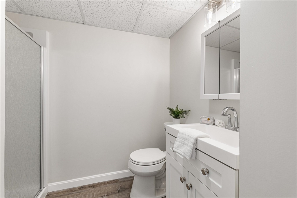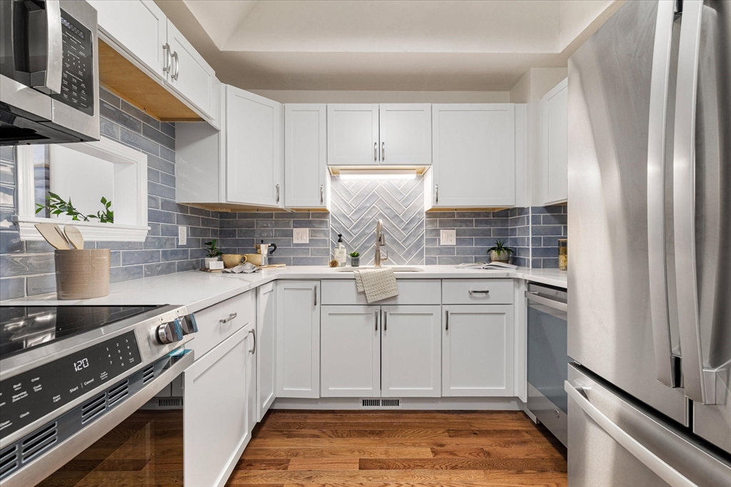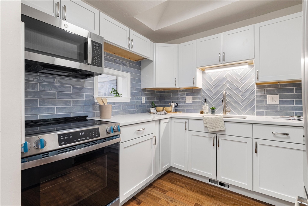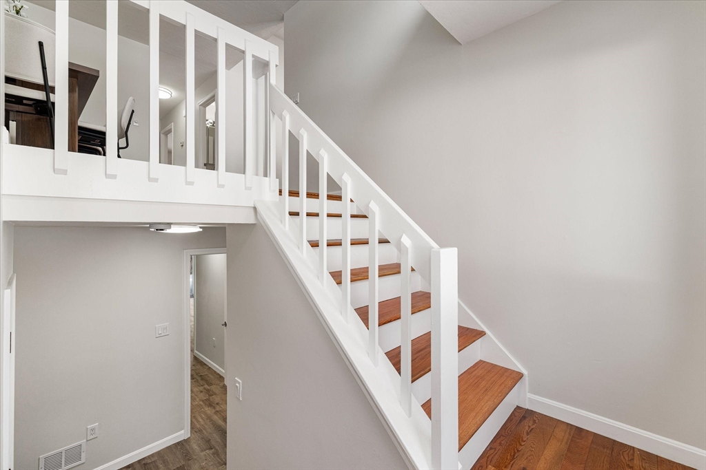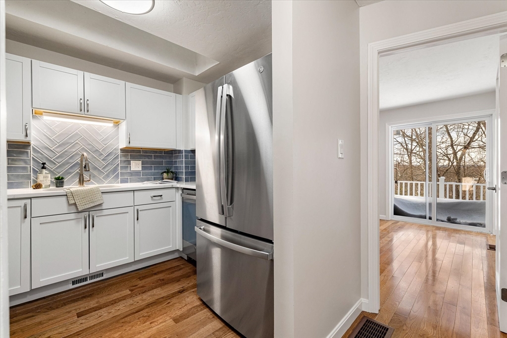 Bright and spacious, completely renovated townhouse in desirable Bruce Hollow II in Grafton. This move in ready condo offers an open layout with abundant natural light, vaulted ceilings, and a cozy fireplace. The renovated kitchen features modern cabinetry, quartz countertops, and ample storage. A first-floor primary bedroom provides convenience and flexibility along with a generous sized guest bedroom, while additional finished space in the walk-out lower level is ideal for a guest room, office, or recreation areas. Private deck and garage add to the appeal. NEW NEW NEW!! New kitchen, bathrooms, new flooring, new slider, new interior doors, new paint, lighting fixtures & more!! There is nothing to do here but move right in! Enjoy close proximity to Grafton Common, shopping, dining, and local parks. Commuters will appreciate easy access to the train station, I-90, Rt-122, as well as nearby Tufts. A fantastic opportunity in a convenient and sought-after condo community!