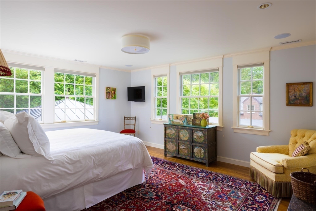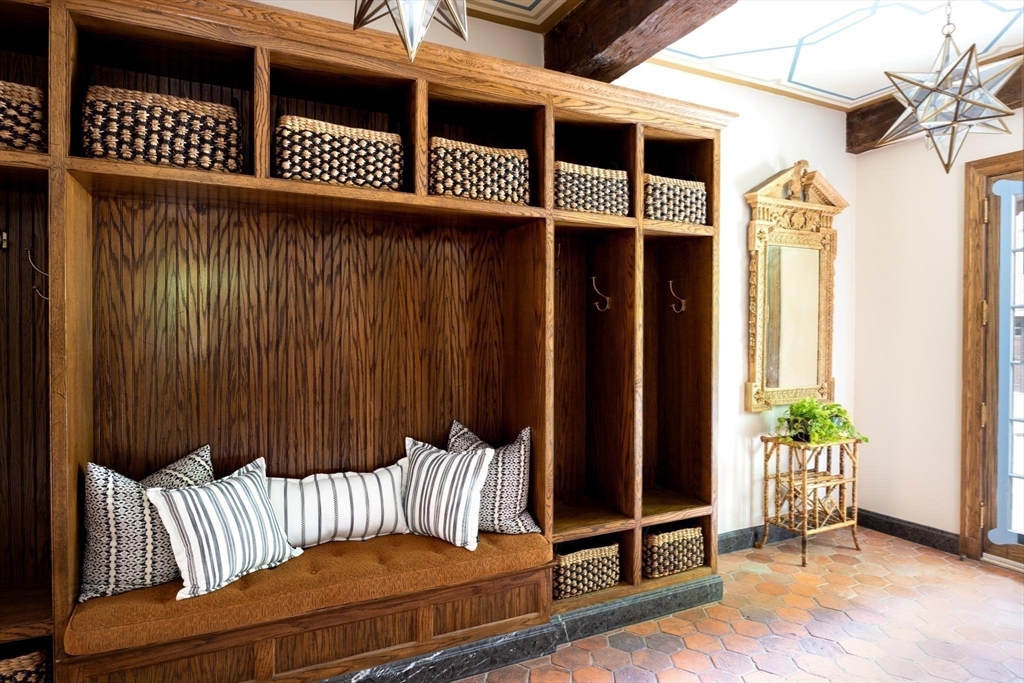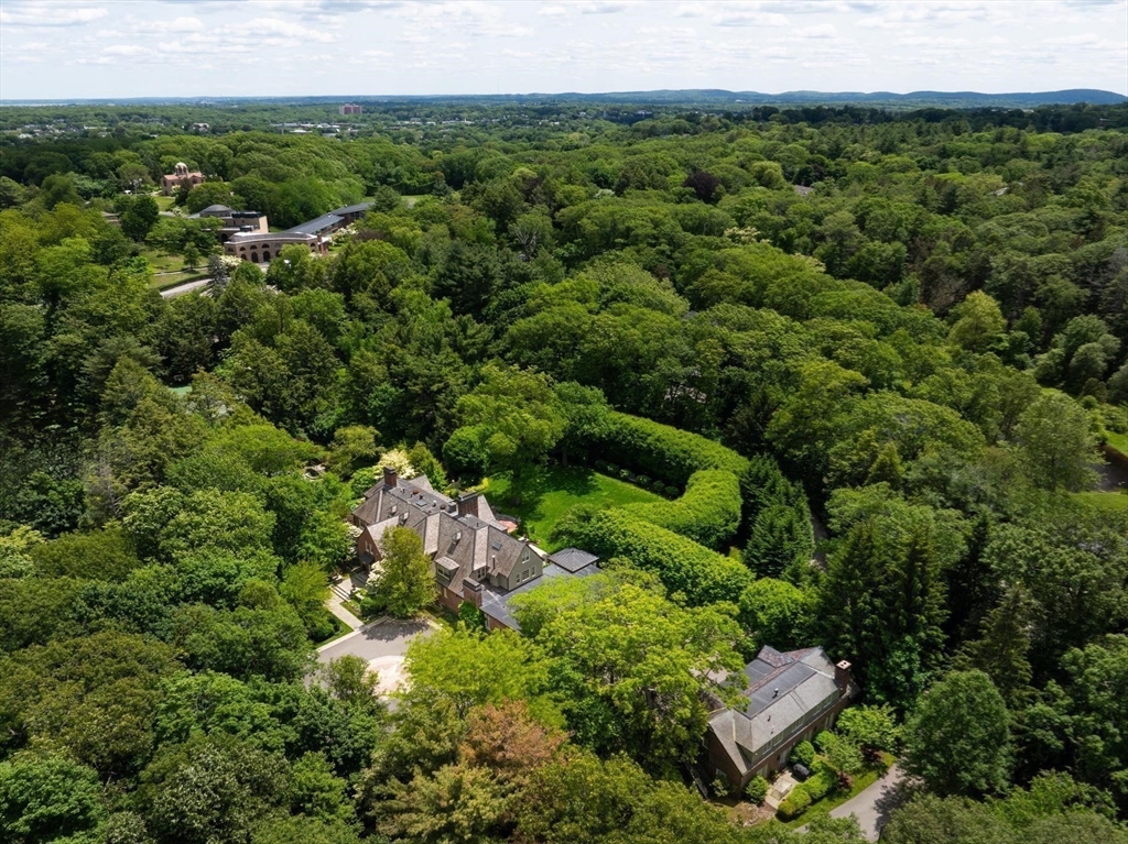 This spectacular residence, set on 4.5 acres in the prestigious Brookline Estate area, has been renovated and is surrounded by private, scenic landscapes. The interior, distinguished by its grandeur and elegance, is adorned with intricate period details, beautiful woodwork, and bright spacious rooms. The grand 13 rooms include a double living room with picturesque views of the gorgeous, expansive grounds. There are 6 bedrooms, one of which is the luxurious primary suite. The meticulously designed grounds feature several unique amenities, including a stunning terrace patio expanding the length of the home, an in-ground swimming pool with fountain and whirlpool artfully integrated with a stone cliff, fully equipped cabana, koi pond, private tennis court, putting green, and magnificent hardscaping. The property also has a three-bedroom cottage and a two-bedroom unit above the free-standing garage. Near fine shops, restaurants, and Downtown Boston.