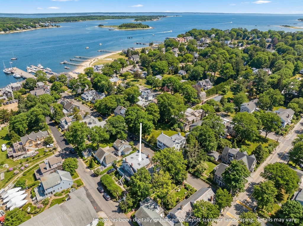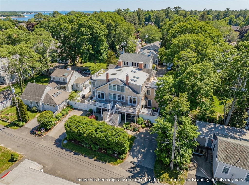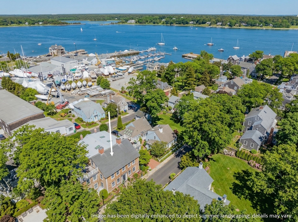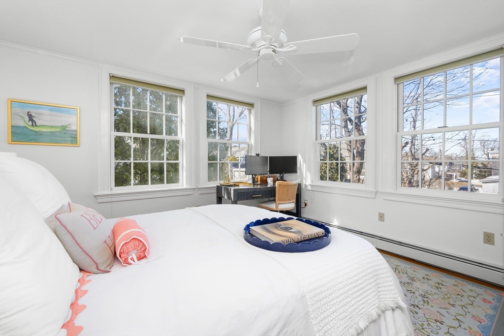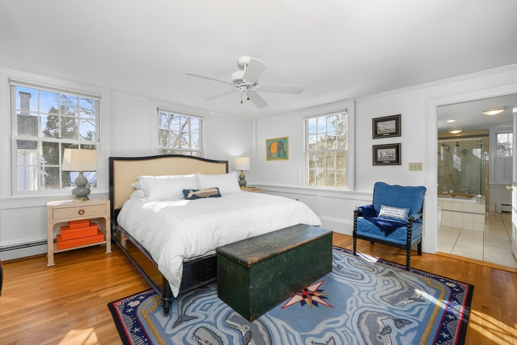 Discover the best of classic New England architecture and coastal luxury at this thoughtfully updated condo in the heart of Marion Village. The entry, distinguished by a charming transom window, opens to a light-filled interior with hardwood floors and crisp wainscoting. The living room is anchored by a fireplace and a built-in window seat capturing views of Sippican Harbor. French doors lead to an elevated outdoor deck overlooking the harbor, ideal for seasonal entertaining. The kitchen features granite countertops, white cabinetry, and stainless-steel appliances, adjacent to a dining area with a built-in cabinet. The primary suite serves as a private sanctuary and includes a fireplace, office nook, and en suite bath with a soaking tub and glass shower. Perfectly positioned within a short walk of the Beverly Yacht Club, the General Store, the Sippican Tennis Club, and Silvershell Beach.