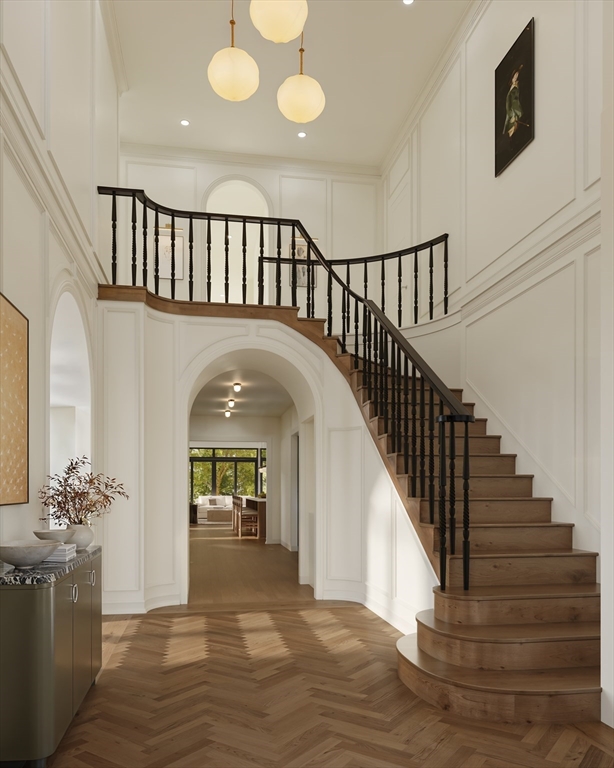 Set along one of Milton’s most distinguished streets, this Modern Victorian residence blends timeless architecture with refined contemporary living. A classic silhouette, steep gables, and deep porch welcome you home, while 5,600 square feet above grade unfold with intention and warmth. Sunlight pours through tall windows into gracious living spaces designed for gathering and quiet retreat alike. Mornings begin in a kitchen both beautiful and inspiring, anchored by custom detailing, curated finishes, and a hidden pantry. Imagine evenings cozied up in the library or beside the lounging in the family room. Upstairs, the primary suite offers a private escape with a remarkable dressing room, while additional bedrooms provide comfort and flexibility. A third-floor retreat invites creativity, work, or play beneath cathedral ceilings. Set on nearly 0.6 acres, this is a home meant to be lived in slowly — and beautifully.