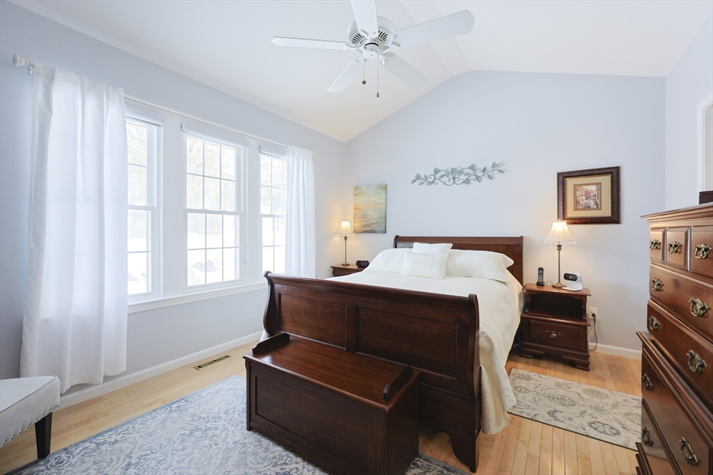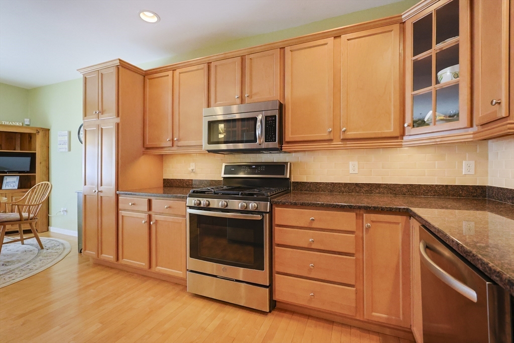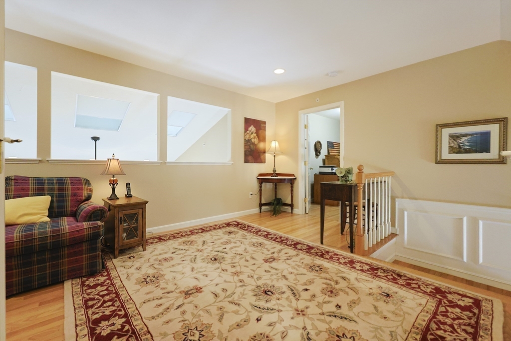 Ready For Immediate Occupancy! Impeccably maintained and move-in condition, this Barker II style condo is ideally located within the highly sought-after 55+ Great Brook Community. Pride of ownership is evident throughout with gleaming hardwood flooring, soaring cathedral ceilings, elegant wainscoting &refined architectural detail. Designed for effortless single-level living, the home offers perfect gathering spaces, including a gracious dining area &and inviting living rm anchored by a gas fireplace. Sliding doors lead to outdoor sitting area surrounded by mature landscaping, complete with Sunsetter awning creating a shaded retreat for relaxing, The spacious first-floor primary suite serves as a private retreat with a well-appointed private bath &generous closet space. Convenient first-floor laundry enhances everyday comfort. The lofted second level provides exceptional flexibility, featuring a second family rm, bedroom, full bath & office.