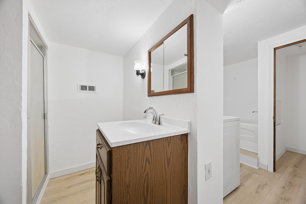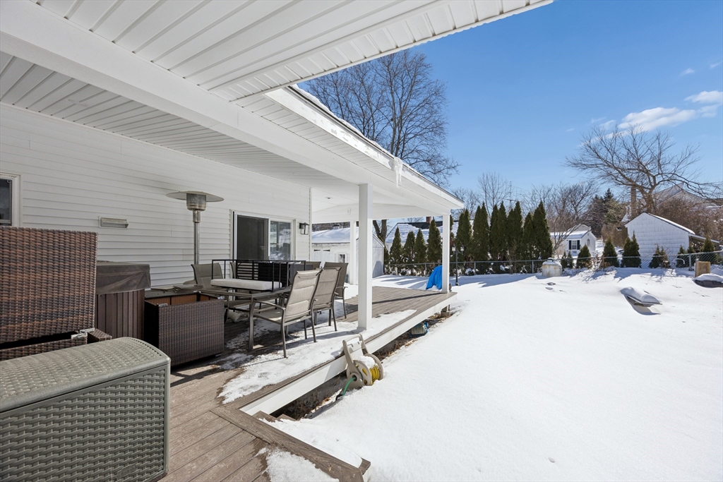 Updated 4 Bedroom, 2 Full Bath multi-level home offering generous living space & modern updates throughout. The sun-filled main level features gleaming hardwood floors, an open-concept living & dining area with access to a spacious deck—perfect for entertaining. The large kitchen includes granite countertops, tile flooring & dining area. A welcoming great room with pellet stove adds even more space to gather. The primary bedroom features a vaulted ceiling w/ skylight, ceiling fan & closet. Three additional bedrooms offer hardwood floors, closets & ceiling fans. An updated full bathroom completes the main level. The lower level provides excellent flexibility with a family room, kitchenette area, home office, updated full bath w/ laundry & storage space. Two laundry areas with washers and dryers are included. Enjoy outdoor living with a large Trex deck overlooking a heated in-ground saltwater pool, plus two sheds for storage. Two driveways— with a garage & carport for added convenience.