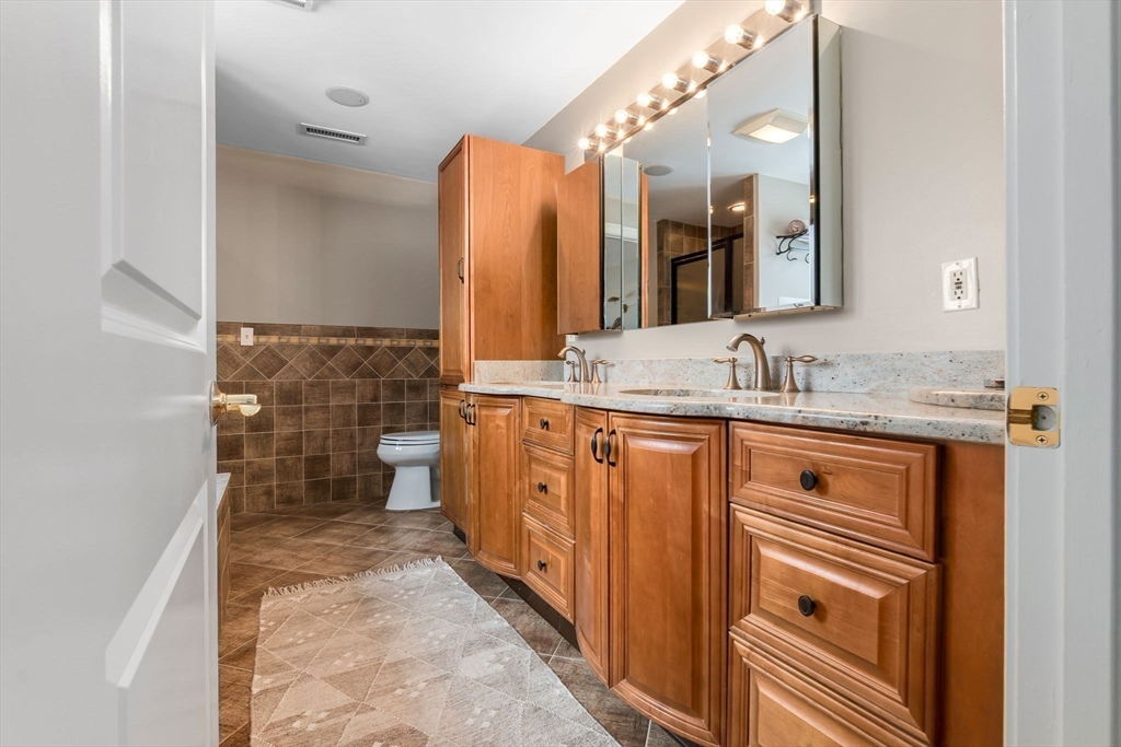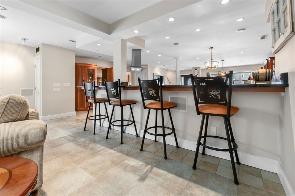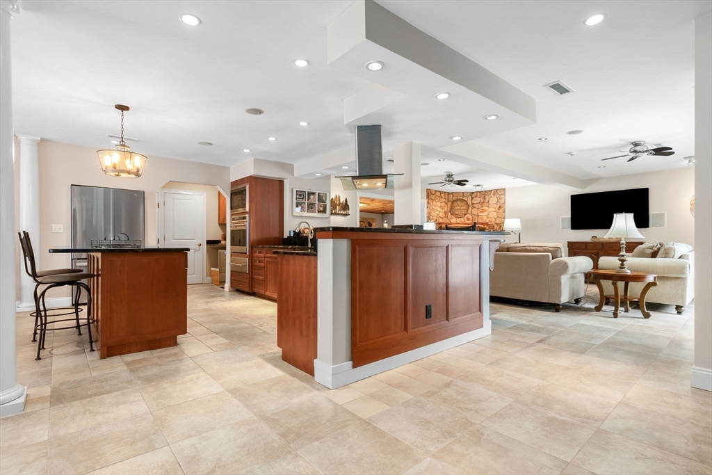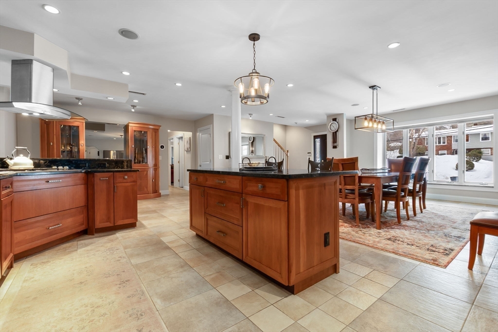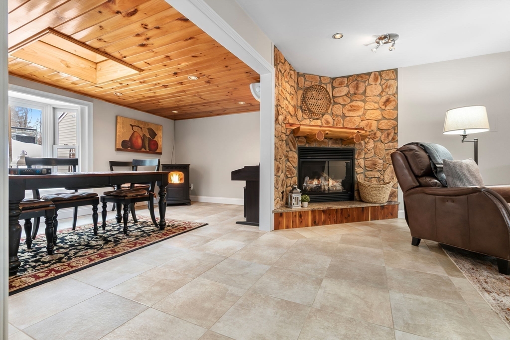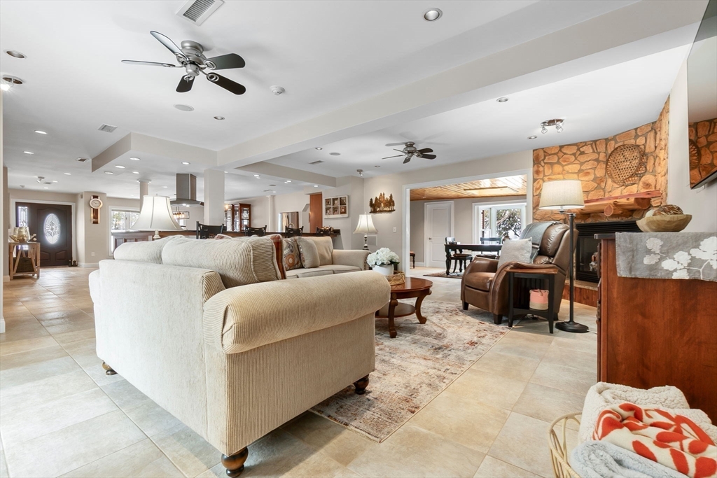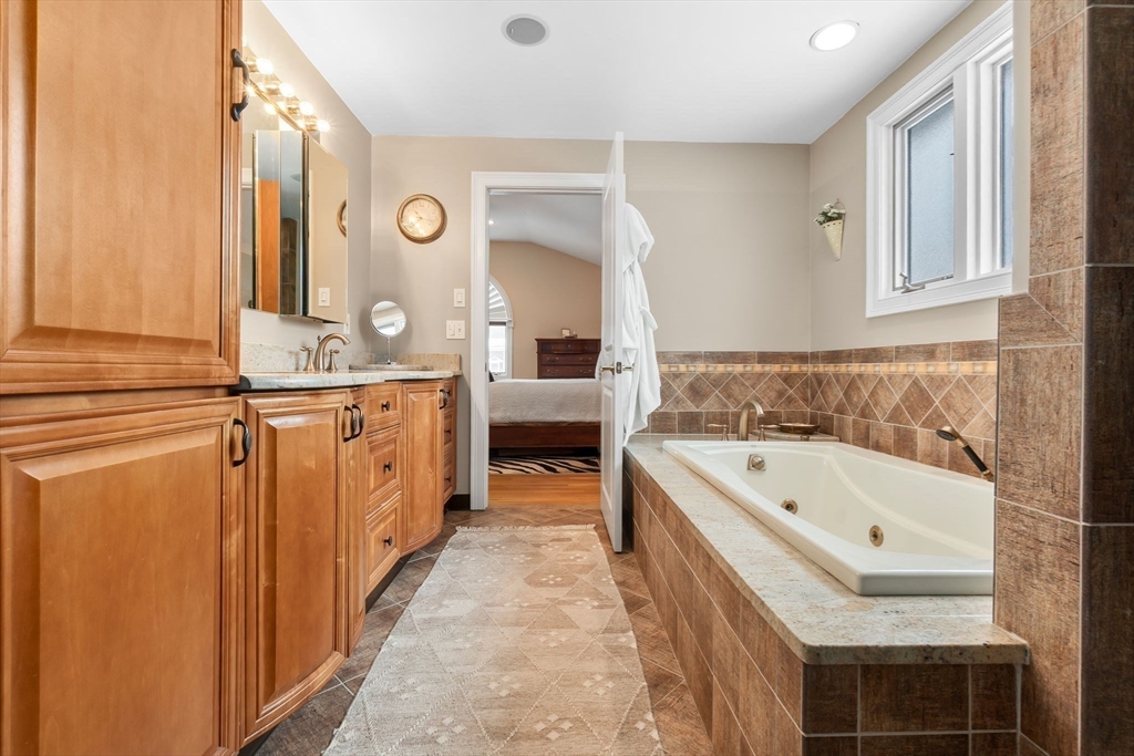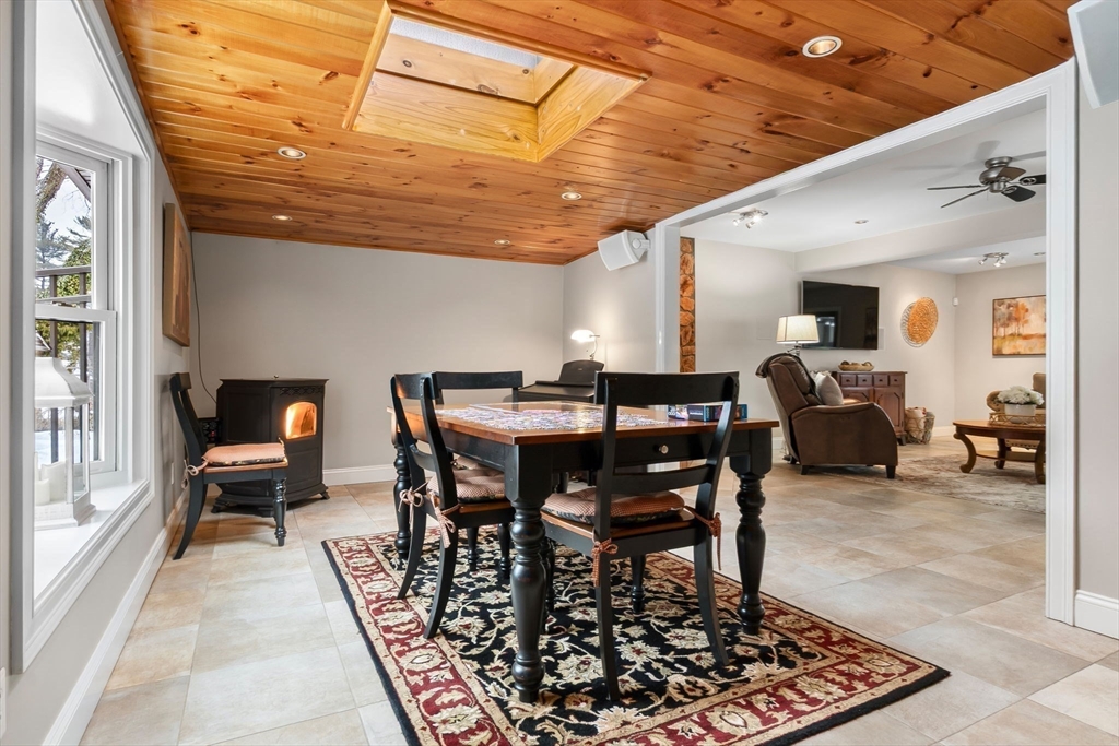 Expansive 3784' home with main-level IN-LAW! Meticulously maintained with open floor plan, 6 BRs, 4.5 baths. The foyer leads to the dining room with bay window and opens to the spacious kitchen area with island, SS appliances, gas cooktop, wall oven & warmer, pantry with wine cooler, freezer, stone countertops, and seating for 4 overlooking the family room with gas FP. The sitting room with sky light, pellet stove, and wood ceiling is a quiet retreat that adjoins the mud room and leads to the yard/deck area. Two bedrooms, one with half bath, along with an exercise room and full bath complete the first floor. The second floor offers HW floors throughout, and features a primary suite with cathedral ceiling, 2 walk in closets, full bath with soaking tub, tiled shower stall. Two additional BRs, full bath, and laundry finish the upper level. Well-equipped in-law with full kitchen, dining area, bedroom, living room, 3/4 bath. Fenced yard, garage, circular drive, patio, deck, bocce court.