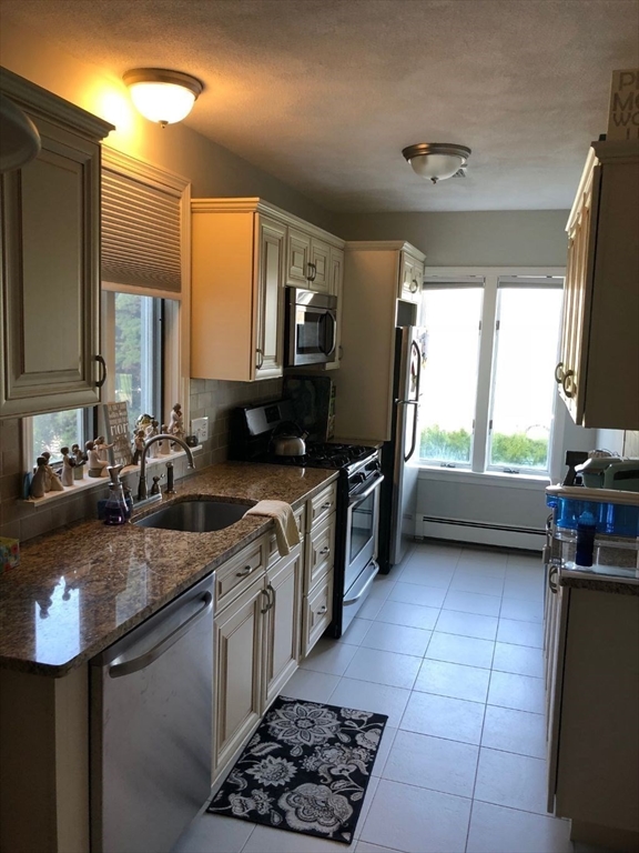 This apt. is a large 4 room/1 bedroom unit overlooking Lake Quannapowitt. It features an updated kitchen, incl. all stainless steel appliances, refrigerator, gas stove, dishwasher, microwave and it has 2 assigned parking spaces. It has an updated bath with all newer fixtures, vanity, tile, tub/shower and tile floor. All rooms have been freshly painted. Fireplace is just decorative. Free laundry in building provided. It is conveniently located in downtown Wakefield with close access to the Wakefield commuter line, public transportation, I93, I95 and Wakefield's shopping and restaurant areas. Nothing to do but move in and enjoy life. Owner requires first month's rent, security deposit. Tenant to pay own gas, electric and cable. Tenants must have good credit rating and reference.