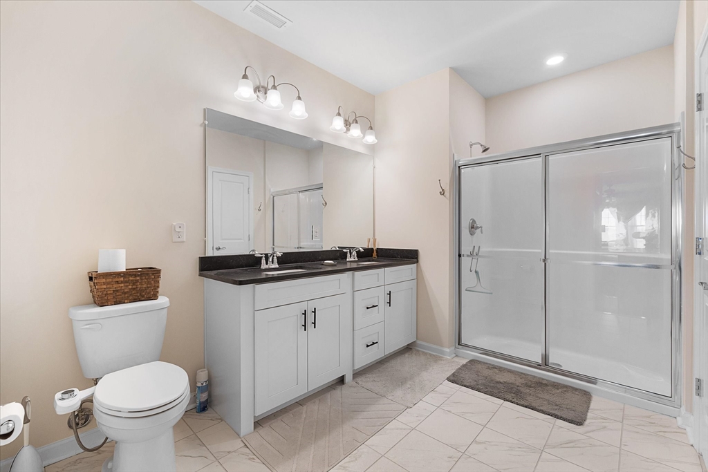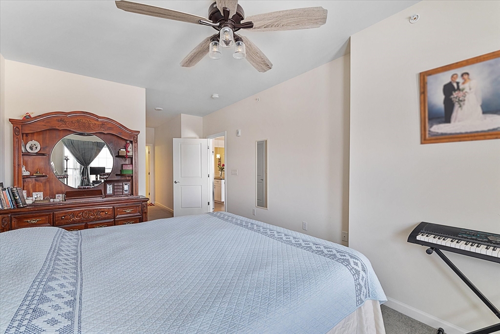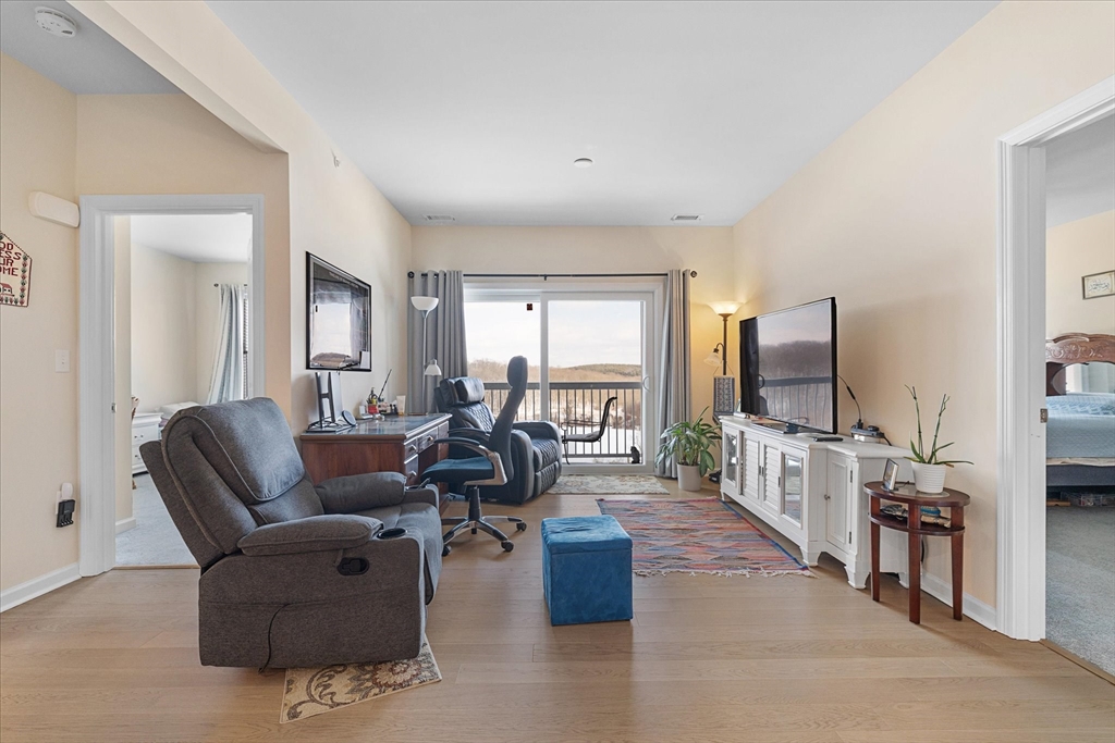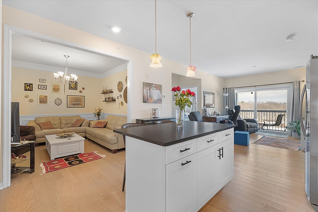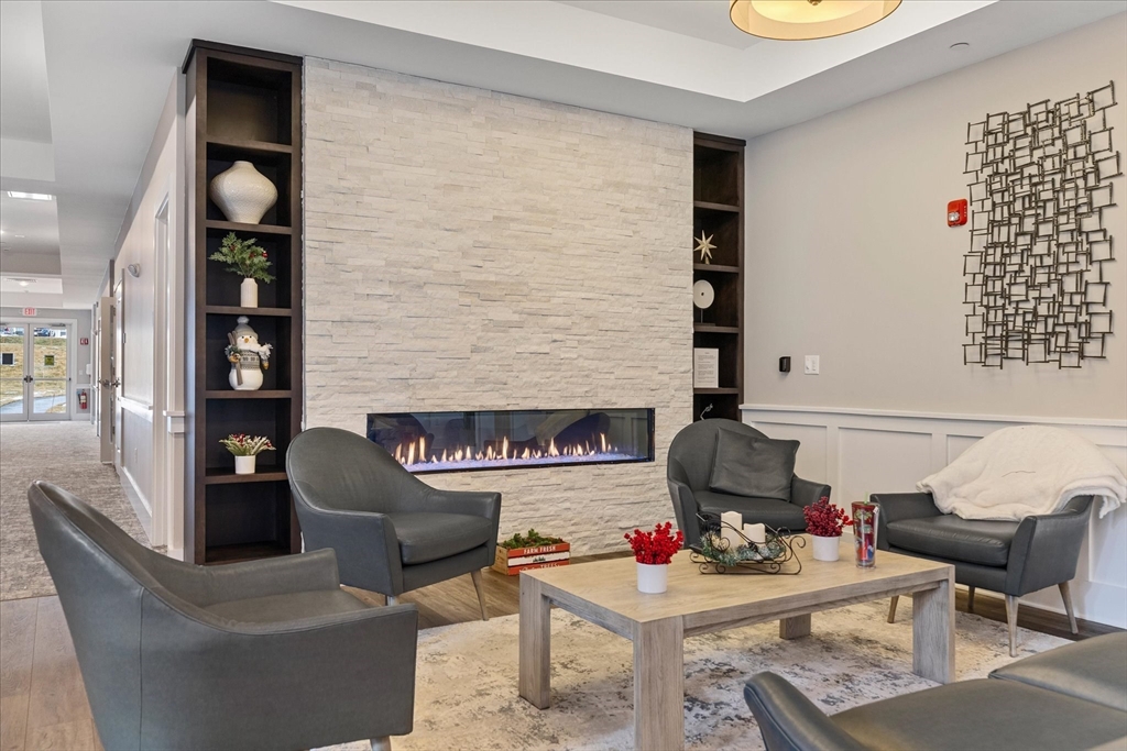 This top tier upgraded unit is available now, so why wait for new construction when you can move right in? Unlike base models offered by the sales office, this home features gas powered forced air heat and two deeded garage parking spaces, an extremely rare offering with comparable parking in newer units selling for approximately $45,000. Open floor plan with high ceilings, white cabinetry, quartz countertops, and wainscoting in the dining area. Spacious living room and family room. Primary suite offers bay windows, two walk in closets, and an oversized bathroom. Additional walk in closet off the foyer plus large storage and laundry rooms. Enjoy sunrise and peaceful nature views from your private retreat in the 55 plus Del Webb Chauncy Lake community near downtown Westborough and major routes.