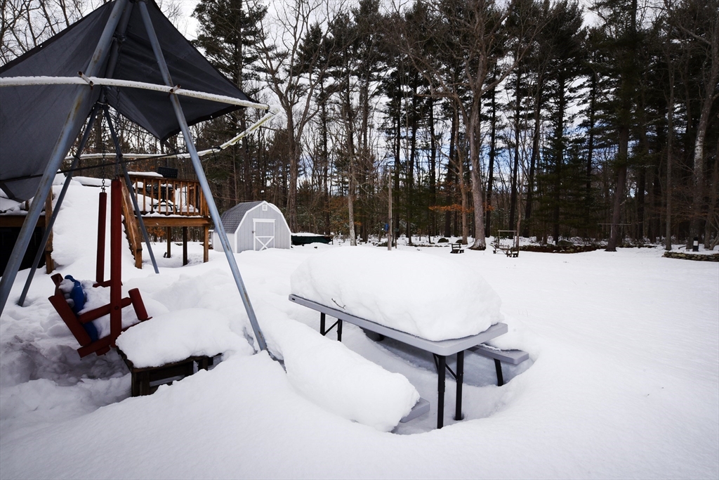 Such a cute Ranch home and so much potential! The property has a fantastic backyard. It has a .65acre lot, which abuts conservation land, has a patio, a 16x12 deck with canopy, garage, 2 sheds and a wishing well.The interior was well maintained with the necessities,has hardwood in the 3 bedrooms, livingroom and hall way.The hallway has a pantry & linen closet next to the full bathroom which has skylight and window.The kitchen has an open atmosphere and room for a small dining area.There's a large peek-a-boo window between the kitchen and livingroom. The livingroom has a large bay window and gas fireplace with blower.The finished basement has a bar area, another small room & walk out.The home may need a little TLC, however it has been taken care of and ready for a new buyer to put their stamp on it, while creating cherished moments,fulfilling daily activities & shopping from a most convenient location.It's close to major roadways for any needed commuting & to Ludden Ford Park to relax!