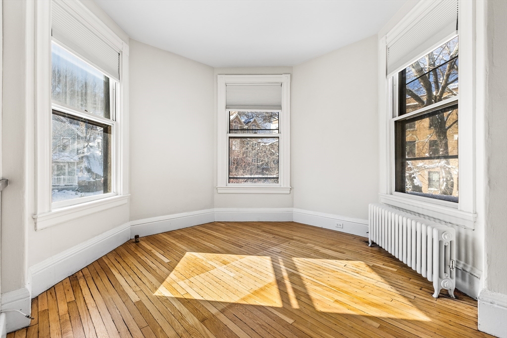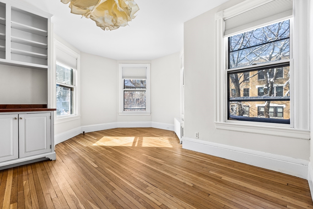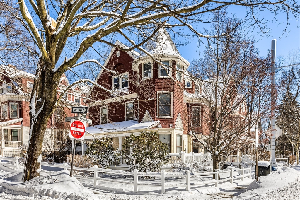 Bright and charming 2-bed, 1-bath condo in a converted Victorian just steps from Washington Square and Coolidge Corner. Big windows overlook mature trees, giving the home a peaceful feel. Inside, you’ll find a spacious layout with a sunny living room and a welcoming entry with a coat closet. The dining area opens to a warm, character-filled kitchen with exposed brick, a butcher-block breakfast bar, gas cooking, and new appliances. A completely renovated bathroom rounds out this home. Enjoy exclusive covered parking, shared outdoor space for gardening or relaxing, and extra basement storage. One block to the Green Line (C) and close to Driscoll School, Griggs Park, shops, and restaurants.
