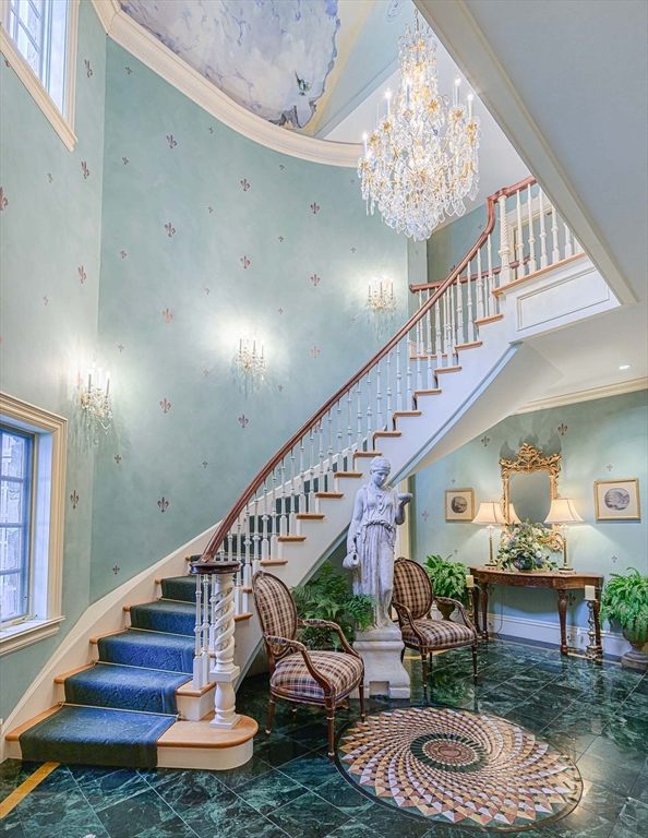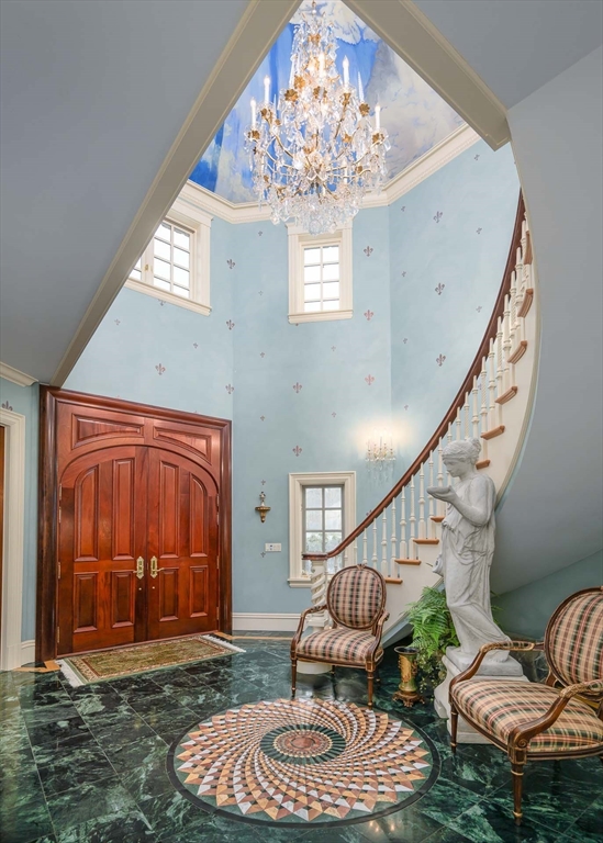 Welcome to 12 Wyndemere, a breathtaking English Country Manor set on 4.5 acres at the crown of Southborough’s most distinguished estate neighborhoods. Surrounded by 180 acres of conservation land, this 12,000+ sq ft residence offers exceptional privacy and timeless presence. Grand formal rooms with handcrafted millwork blend seamlessly with inviting spaces designed for everyday living. Seven gas fireplaces add warmth and charm throughout making the home surprisingly cozy for its scale. The upper level features six bedrooms, including a spacious primary suite with dual baths and magnificent sunset views. The estate’s unparalleled grounds are a masterpiece of landscape design with multiple terraces, brick walkways lined by sculpted hedges, perennial blooms, a flourishing apple orchard with working cider press, a smokehouse, heated freeform swimming pool and a formal English garden for reflection. Only 1 mile to Fay & St. Marks schools and 25 miles to downtown Boston.