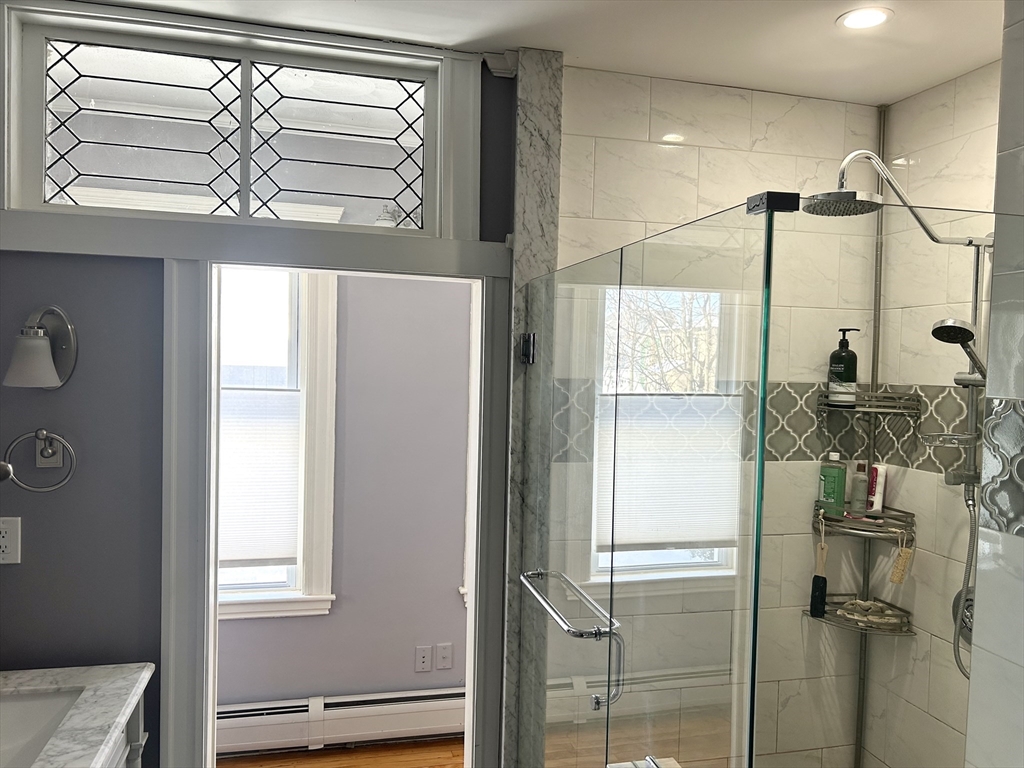 Beautiful sunny 3 bedroom apartment in an ideal location: a quiet dead-end road, across the street from Spy Pond Field, and a 2min walk to the Minuteman bike path and Central Arlington shops and cafes. Only a few miles from Tufts, Harvard, MIT.This three-level condo features hardwood floors and high ceilings and has been recently renovated including a new induction stove and new heat pumps for year-round temperature control. A back porch and two patios are right through the french doors from the kitchen. Gardener's delight with a fruiting peach tree, organic raised beds, and earth boxes. Fantastic spot for families: a quiet dead-end street with a lovely grass field and tennis/pickleball courts right out the front door, plus easy access to the bike path and the Arlington boys and girls club.Highlights:- Quiet, dead-end street- Across the street from Spy Pond Field- 2min walk from bike path and Arlington Center- Reserved parking spot- Outdoor grill- Blue Bike station