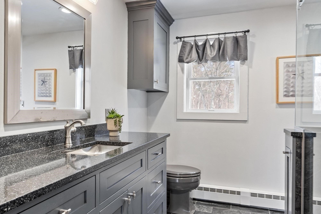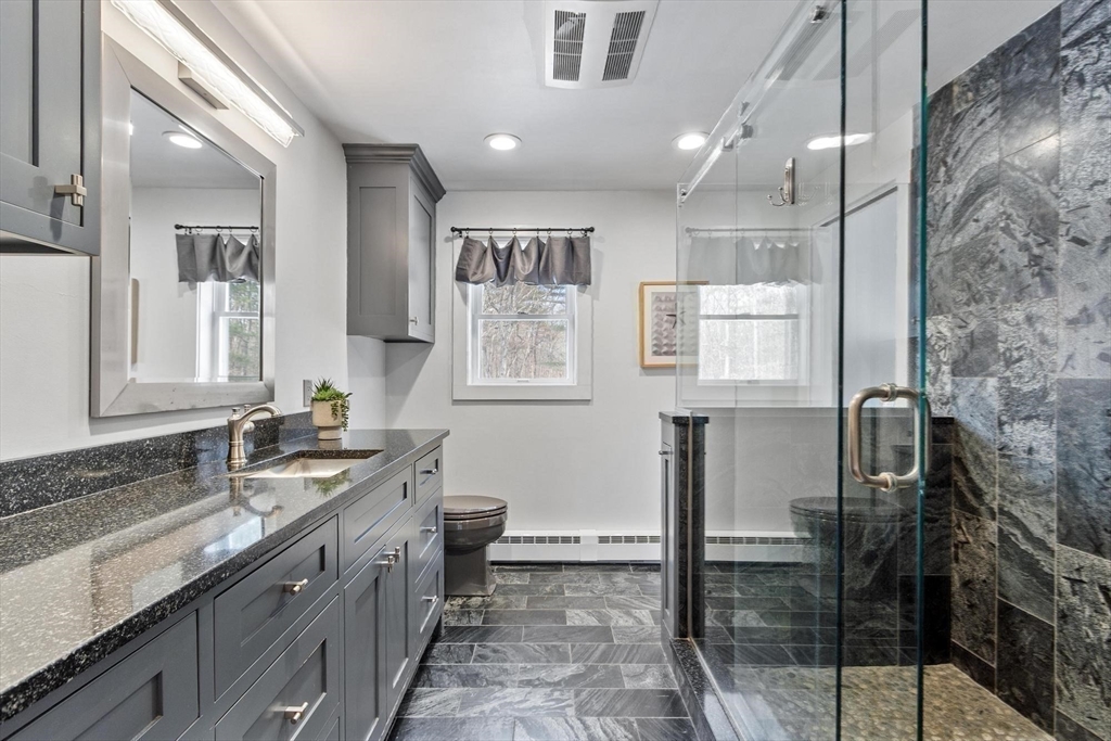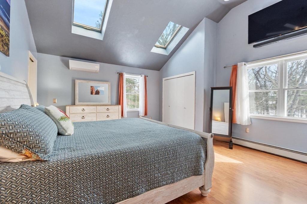 Custom Colonial with a Modern Edge! Ideal Commuter Setting minutes from Rt. 2/ 190. This home stands apart from the ordinary. Cambria Quartz counters, custom cabinetry, faux-tin ceiling, stainless appliances, and sleek LED lighting define the kitchen; while the baths showcase similar upgrades with detailed custom tile work. The spacious primary offers cathedral ceilings, skylights, and two closets including a walk-in. Tall ceilings, skylights, and a slider to the massive composite deck highlight the living room. French doors open to the first-floor office. The lower level includes a game room/family room plus workshop space. Efficiency shines with a 5-zone Buderus boiler, Electric fireplace in the dining room, and Generac generator with separate panel. A detached 18’x35’ heated 3-bay garage with custom flooring offers a true haven for car lovers, paired with a 2-bay attached to keep your prized vehicles protected. Mini-splits for Ac. Fruit trees, Greenhouse, and flower beds in yard.