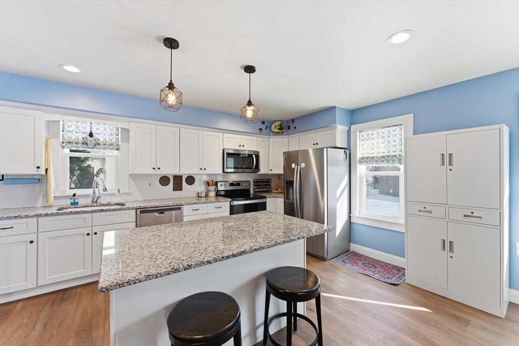 Updated, New, and beautiful describe this wonderfully renovated 3/4 Bedroom, 2.5-bath home offering space, style, and modern upgrades throughout! The brand-new kitchen features new cabinets, flooring, and NEW SS Whirlpool appliances. Opening to a flexible first-floor layout with living room, dining room, and office/4th bedroom option. Convenient 1st floor mudroom with washer/dryer hookups and updated full bath w/ tile. Upstairs offers hardwood floors, three spacious bedrooms with ceiling fans, and an updated full bath with additional laundry hookups. Also, 2nd floor boasts another kitchen and/or great room with multiple uses. Enjoy abundant closet and storage space throughout the home. Plenty of parking and a detached 2-car garage, along with major improvements including 2 NEW circuit breakers, NEW hot water heater, NEW vinyl siding, NEW roof, & mostly newer windows. Option to convert to a multi-fam from single fam Fantastic location close to shopping, dining, and everyday amenities