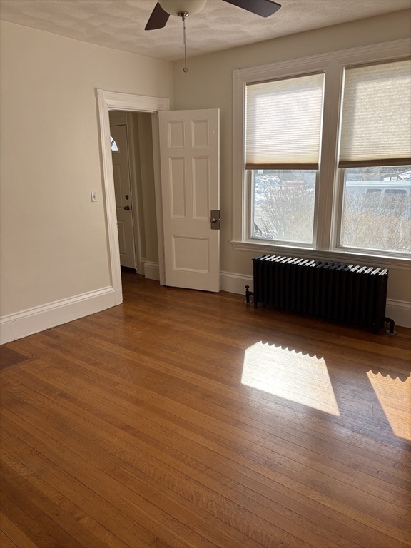 Spacious, recently renovated 2-bedroom (second bedroom is smaller), 1-bath apartment with hardwood floors throughout. The unit features a large eat-in kitchen with granite countertops, stainless steel appliances, dishwasher, and direct access to the backyard. Located in a quiet neighborhood just a short distance to the Charles River, the new Arsenal Yards, and convenient access to Boston and Cambridge. Laundry in the basement. Rent includes one parking space, water, snow removal, and landscaping. Cats OK. Available now. Easy to show – lockbox access.