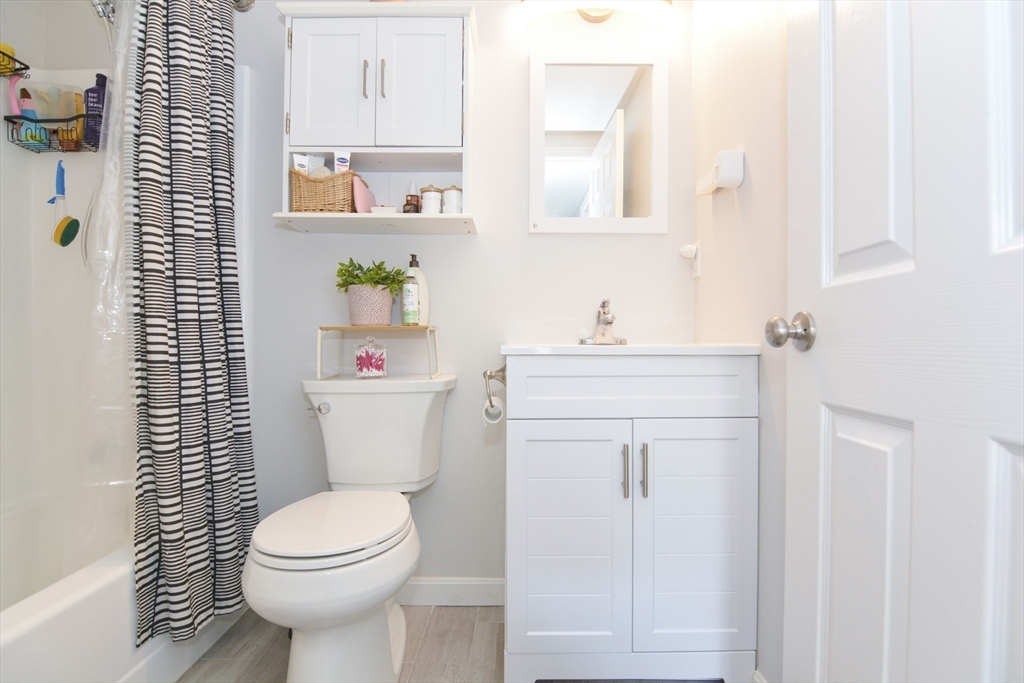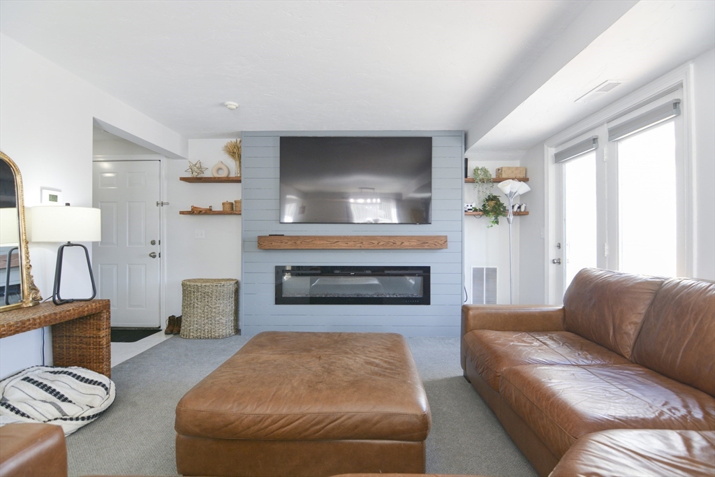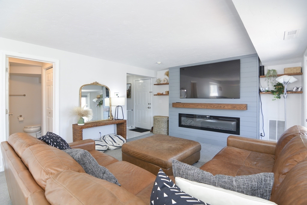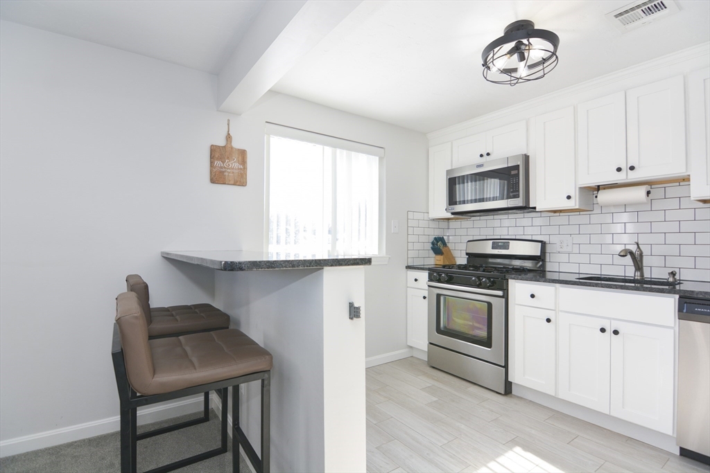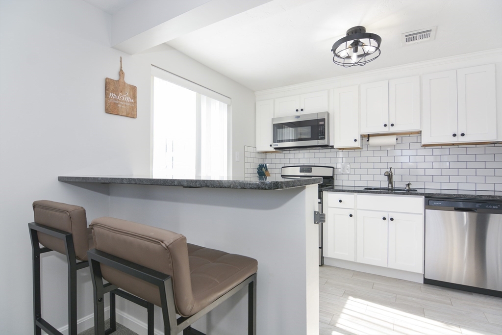 Immaculate 2-bedroom, 1.5-bath end unit in the highly desirable The Courtyard offering stylish updates and turnkey living. The sun-filled main level features an open floor plan with a beautifully renovated kitchen showcasing granite countertops, white shaker cabinetry, stainless steel appliances, gas range, and peninsula seating. The kitchen flows seamlessly into the dining area and spacious living room highlighted by an electric fireplace and access to a private deck. An updated half bath with in-unit laundry completes the first floor. Upstairs you’ll find two generously sized bedrooms, both with walk-in closets, and a tastefully renovated full bath. Additional features include a large private basement storage area just steps away, deeded parking, ample guest parking, gas forced hot air heat, and central A/C. Enjoy community amenities including an in-ground pool, clubhouse, and exercise room, all conveniently located near shopping and major routes.