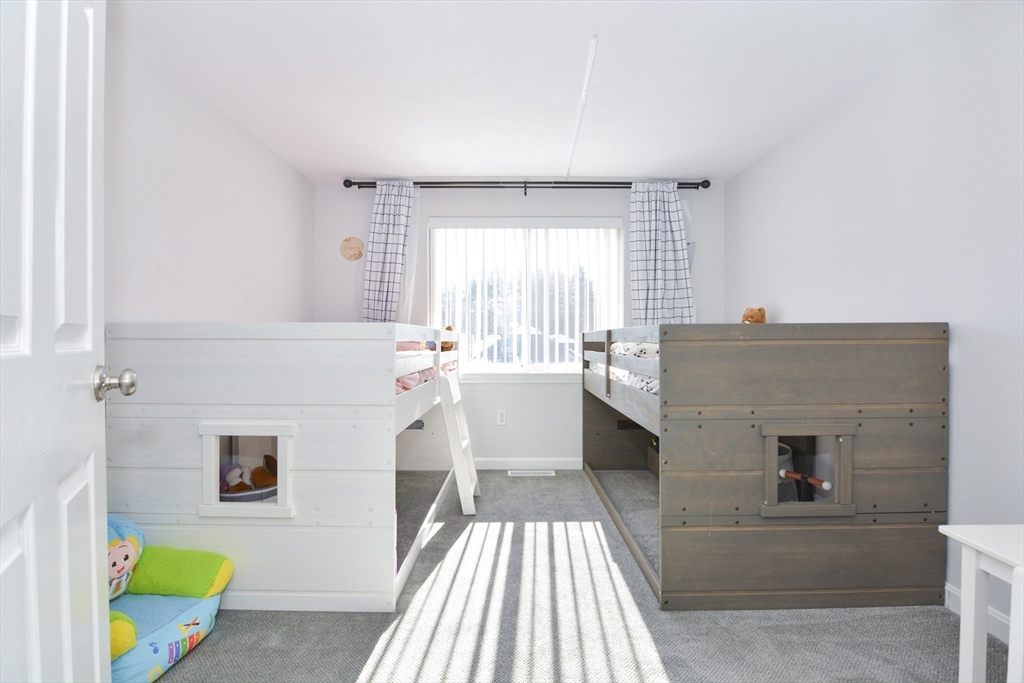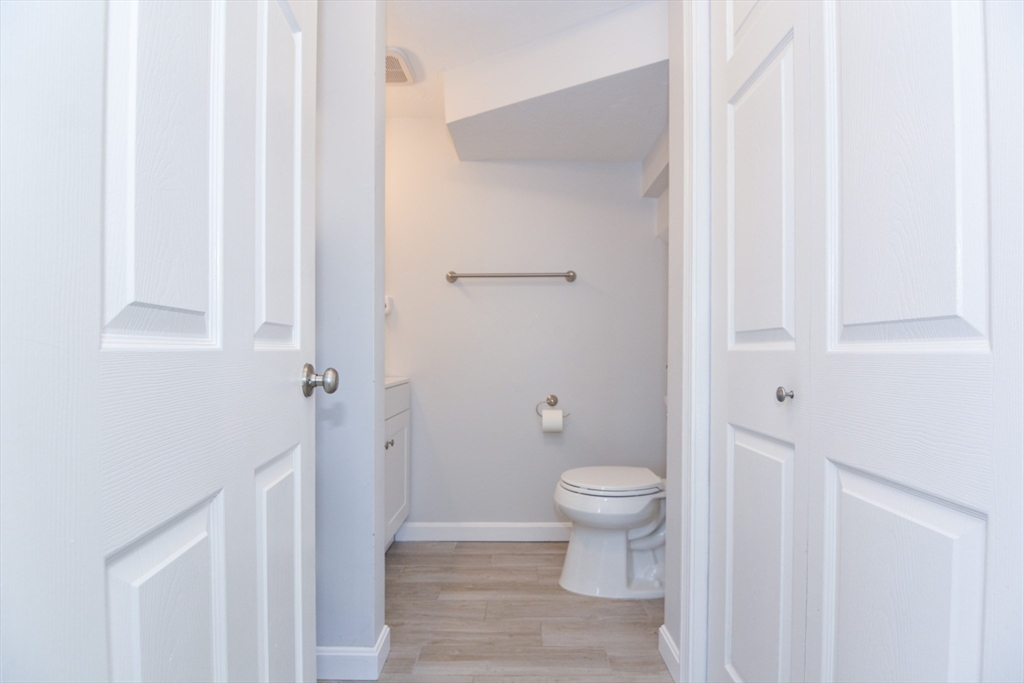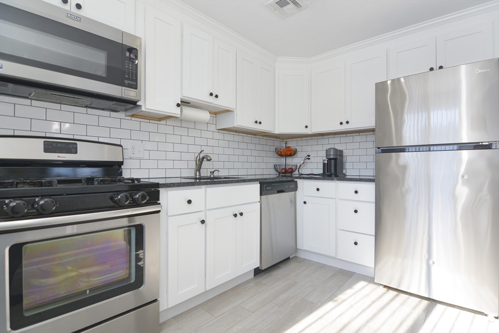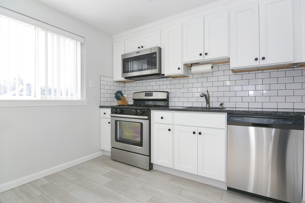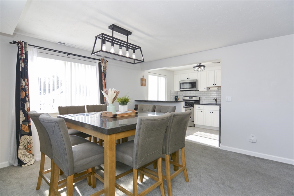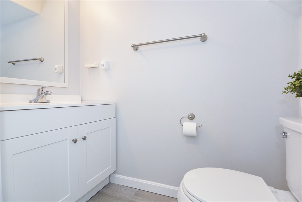 Immaculate 2-bedroom, 1.5-bath end unit in the highly desirable The Courtyard offering stylish updates and turnkey living. The sun-filled main level features an open floor plan with a beautifully renovated kitchen showcasing granite countertops, white shaker cabinetry, stainless steel appliances, gas range, and peninsula seating. The kitchen flows seamlessly into the dining area and spacious living room highlighted by an electric fireplace and access to a private deck. An updated half bath with in-unit laundry completes the first floor. Upstairs you’ll find two generously sized bedrooms, both with walk-in closets, and a tastefully renovated full bath. Additional features include a large private basement storage area just steps away, deeded parking, ample guest parking, gas forced hot air heat, and central A/C. Enjoy community amenities including an in-ground pool, clubhouse, and exercise room, all conveniently located near shopping and major routes.