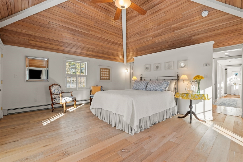 Incredible opportunity to be in Scituate Center within minutes to the harbor, library, tennis/pickle ball courts, sport fields, and commuting! This charming hip roof offers incredible warmth, large spaces, and an amazing flat yard adjacent to a quiet neighborhood - great walkability! Curb appeal is only the beginning of the story here - enjoy the Lawson Tower bells as you rock on your new Ipe farmer's porch, or spread out for a whiffle ball game across the huge back yard (complete with 3 sheds and outdoor shower). Inside the ambiance will delight those who appreciate true craftsmanship. A wood burning fireplace with gorgeous mantle surround, a primary suite with lofted ship ceiling and Juliette balcony, a brand new sunroom overlooking the landscape, numerous built-in closets and cubbies throughout - the features go on and on! Lots of space for the entire clan inside and out, room to work from home, and a price point that wins $/sq.ft. category. A true home feeling in a central spot.