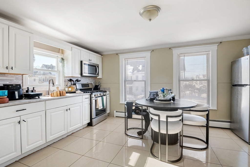 Updated and well maintained 2 family home with separate utilities ideally located on a corner lot in South Lawrence with off street parking for 5 cars. Unit 1 is a 1 bed, 1 bath. Unit 2 is a 3 bed, 1 bath plus office/study. Each unit features updated kitchens with white cabinets, granite counters, stainless steel appliances, and tile floors. Each unit also features wood laminate flooring and crown molding. Home insulated through the Mass Save program. Two gas heating systems approximately 8 years old. 2 laundry hook ups in basement. Many plumbing and electrical updates. Close to shopping, highways and public transportation. Roof age is unknown, likely older and near end of life. Vivint smart security system included in sale (2 exterior cameras, 1 interior hallway camera, digital thermostats, digital door locks). Unit 1 leased through 10/31/26 at $1,900/month. Unit 2 currently vacant but was most recently leased for $2,600/month. 2 parking spots leased through 5/15/26 for $200/month.