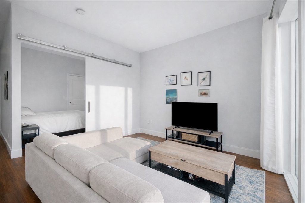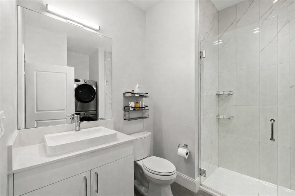 Exceptional southwest-facing penthouse in Jeffries Point offering sweeping city views. Built in 2022, this sun-filled junior one bedroom residence features an open-concept layout, central A/C, in-unit washer and dryer, and thoughtfully designed use of space that extends out to the private balcony. High-end finishes include stainless steel LG appliances, custom high-gloss white cabinetry, white Silestone countertops, and Calacatta porcelain tile. This elevator building is complemented by two roof decks, a fitness center, package room, bike storage and garage parking may be available for rent or purchase. Ideally located just a five-minute walk to the Maverick Blue Line with quick access to downtown Boston, Logan Airport, a plethora of restaurants, and tree lined parks. An exceptional opportunity for luxury living in East Boston’s premier neighborhood.