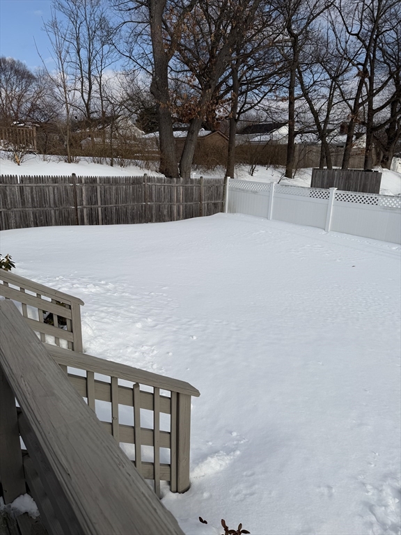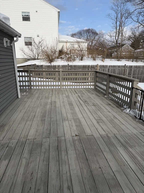 Welcome to this beautifully maintained 4-bedroom, 2-bath residence offering a flexible open-concept layout designed for comfortable living and effortless entertaining. Two generously sized bedrooms are located on the main level, providing versatility for a home office. The spacious eat-in kitchen—complete with refrigerator, stove, dishwasher, microwave, and disposal—flows seamlessly into a bright and airy living room featuring a cozy fireplace, bay window, and recessed lighting. Step outside to a large deck overlooking a beautifully landscaped backyard. Recent upgrades add tremendous value, including a brand-new, energy-efficient natural gas forced hot air heating system and newly refinished hardwood floors throughout.Additional highlights include a full-size basement with washer and dryer included, abundant storage space, and ample off-street parking