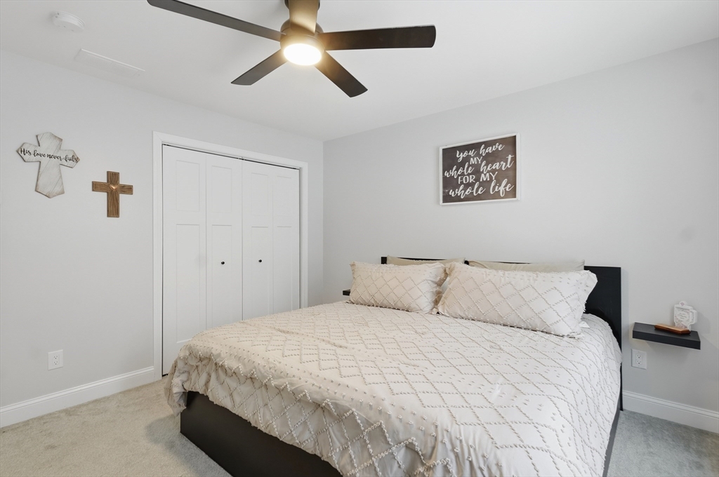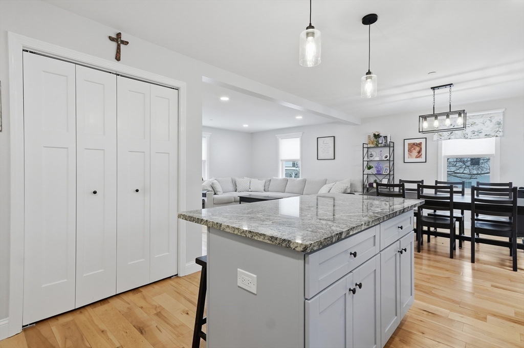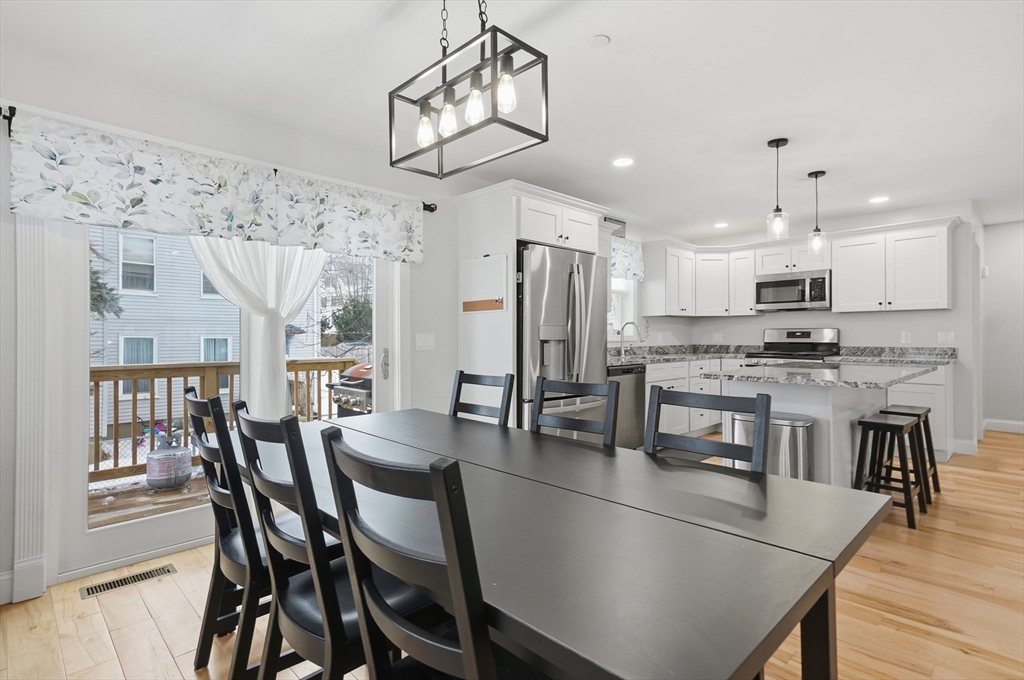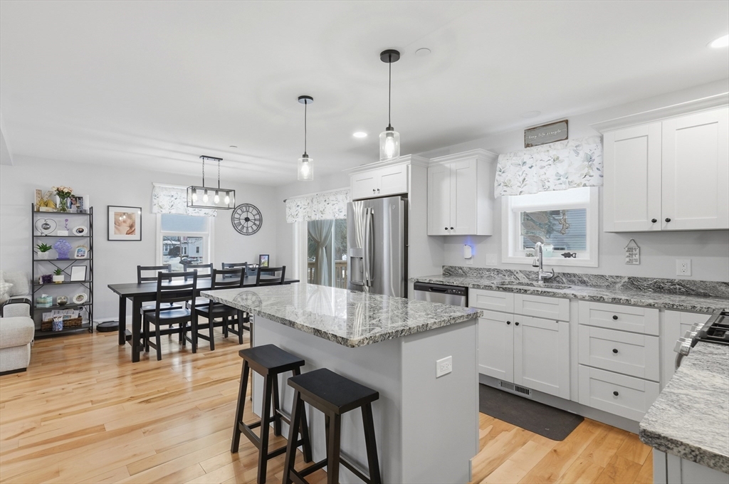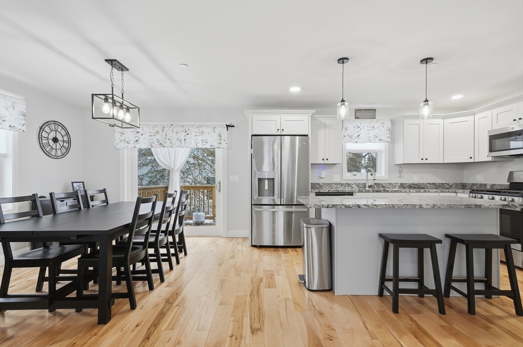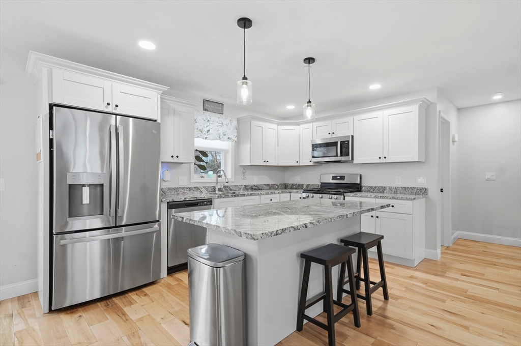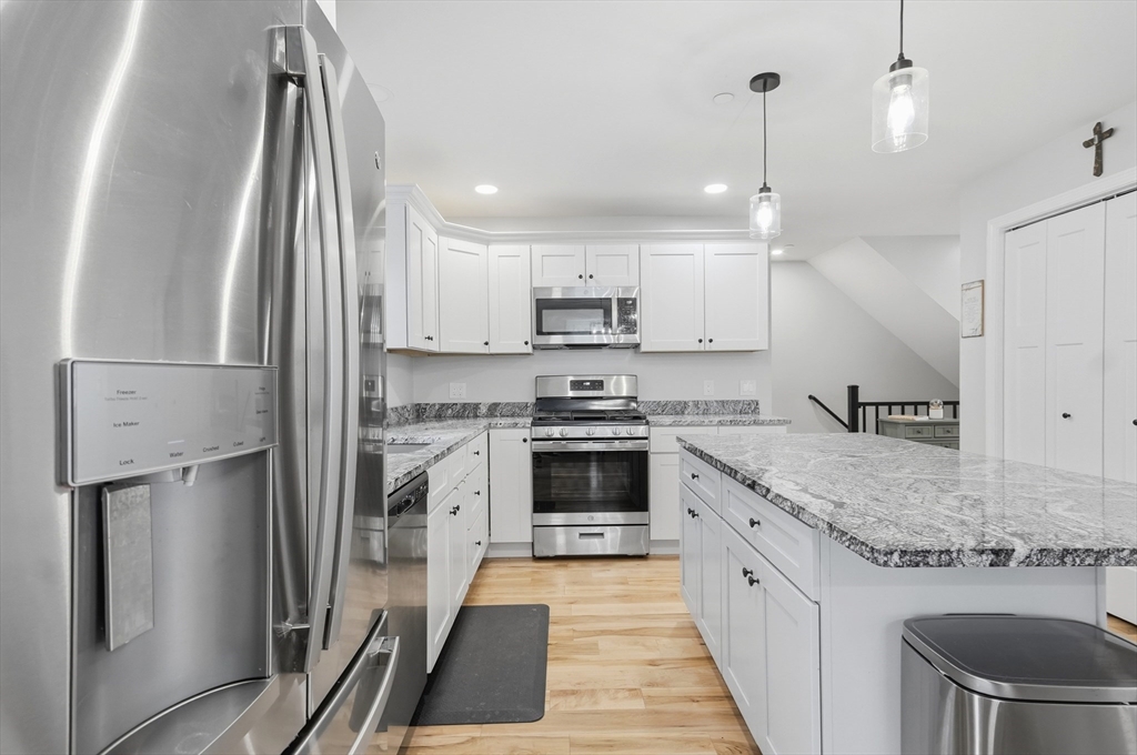 Welcome home to this move-in ready 3-bedroom, 2.5-bathroom townhouse in Haverhill! Enter inside to a bright and inviting open floor plan, where the sun-filled living room flows seamlessly into the dining area with slider access to a private back deck - the perfect place to enjoy your morning coffee. The kitchen is designed for both style and function, featuring shaker cabinets, granite countertops, a 6 ft center island with breakfast bar, gas cooking, and modern stainless steel appliances. A convenient half bath and first-floor laundry complete the main level. Upstairs, you’ll find 3 generously sized bedrooms, including a spacious primary with its own private full bath with dual vanities. An additional full bathroom with a tub/shower serves the remaining bedrooms. Enjoy the added convenience of additional custom shelving and a two-car garage with direct interior access. Ideally located close to restaurants, shopping, and major routes - truly a commuter’s dream!