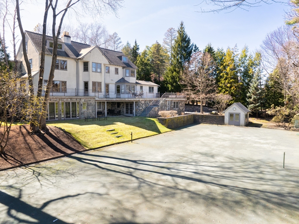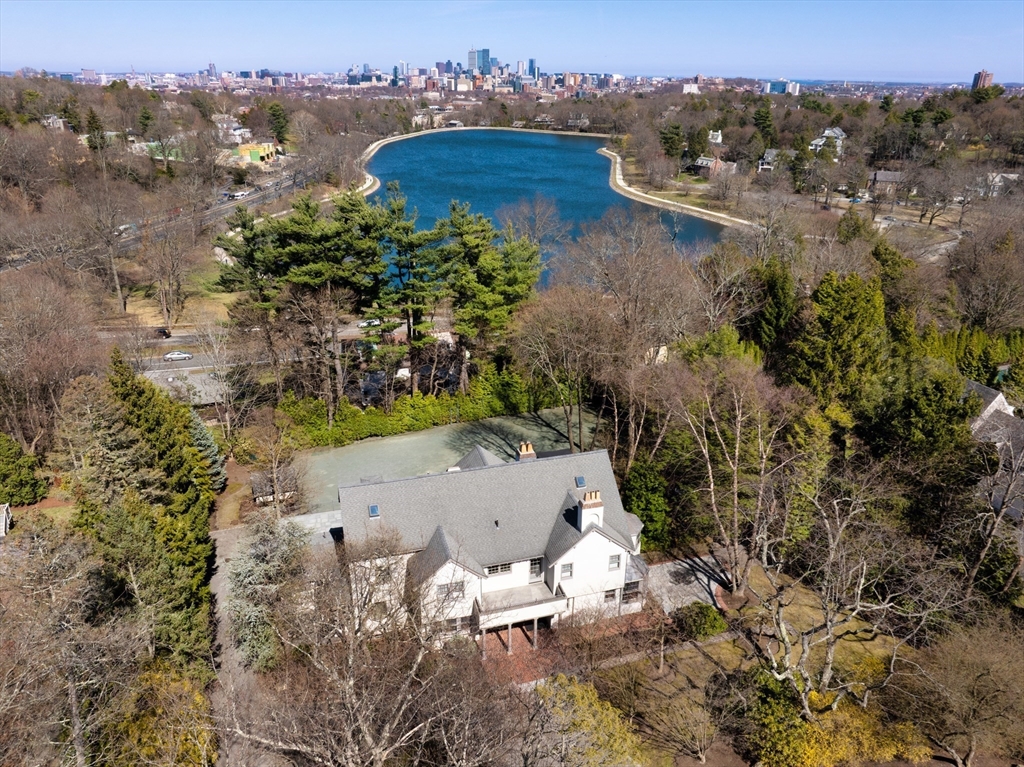 Perched on a private cul-de-sac, this commanding 7BD, 5FB & 3HB 6,560SF property sits on .72AC of landscaped grounds, offering rare space & privacy minutes from the city. Built in 1901, this home was reimagined to respect the original architecture while introducing a modern sensibility, including geothermal heating. Intricate millwork, crown moldings, 6 fireplaces, & expansive windows fill the interiors with light. Nearly every room captures sweeping views of the Brookline Reservoir and Boston skyline. Window-lined living room w/ patio access & dining room w/ bay window & butler’s pantry. Sun-filled eat-in kitchen opens to family room, bluestone patio, & backyard. 2nd floor features en-suite primary plus 3 bedrooms & 2 baths. 3rd floor w/ 2 bedrooms & full bath. Walkout lower level w/ great room, game room, & en-suite guest room. Attached heated four-car garage. Tennis court and sweeping bluestone terraces. Minutes from Chestnut Hill’s ‘The Street’ & quick drive to Boston/Cambridge.