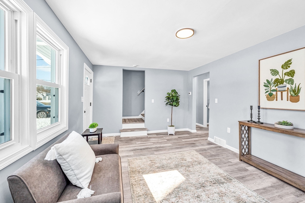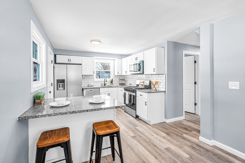 Welcome to this beautifully renovated Cape-style home offering the perfect blend of modern upgrades and classic charm. Thoughtfully updated from top to bottom, this three-bedroom, two-bathroom home is truly move-in ready. The flexible layout includes a convenient first-floor bedroom and full bathroom ideal for guests, a home office, or single-level living. Upstairs, you’ll find two additional bedrooms and another fully updated bathroom.The kitchen shines with all-new appliances, stylish finishes, and modern lighting perfect for everyday living and entertaining. Major improvements offer peace of mind, including a new electric hot water heater, new natural gas furnace, central ac, new roof, and new exterior siding. The spacious, partially fenced backyard provides outdoor retreat whether that’s grilling, relaxing, gardening, or entertaining. This turnkey property is the perfect opportunity to own a fully updated home with modern comfort and lasting value.