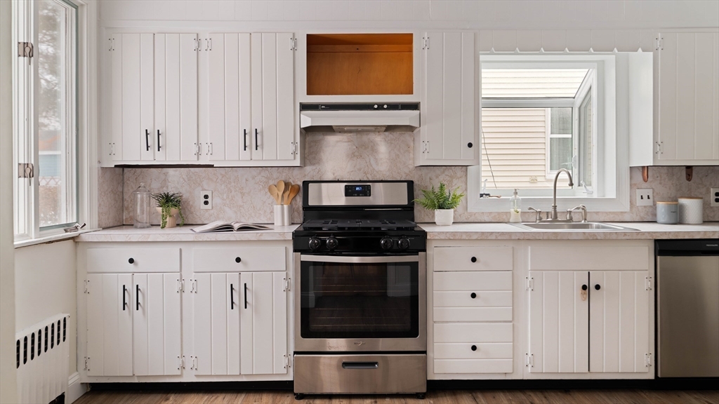 Between Rozzie and Cleary-Logan Square, a 3 bed Dutch Colonial pairs modern updates with antique charm. Elevated w/ southern exposures, sunlight pours through. The living room centers a decorative bricked fireplace, oak floors underfoot, crown molding, and a seamless flow to the sunroom & formal dining room. A white & bright kitchen offers stainless appliances, LVP flooring, charming retro counters & a door leading out to a spacious deck. Mature trees surround the fenced yard. Upstairs, three bedrooms, plus the perfect office. A new bath reno w/ subway tile, trendy gold fixtures & addition of a tub. Storage & expansion possibilities abound in the full-height pull-down attic + the garage with a convenient side entry into a walled basement room, full ceiling height- Was that Pittsburgh potty once a bathroom? With mini-split & ducted AC for year round comfort, a newer water heater & windows + 200 amp electric. 1.1mi to Commuter Rail, or Ron’s Ice Cream & Bowling- priorities are up to you!