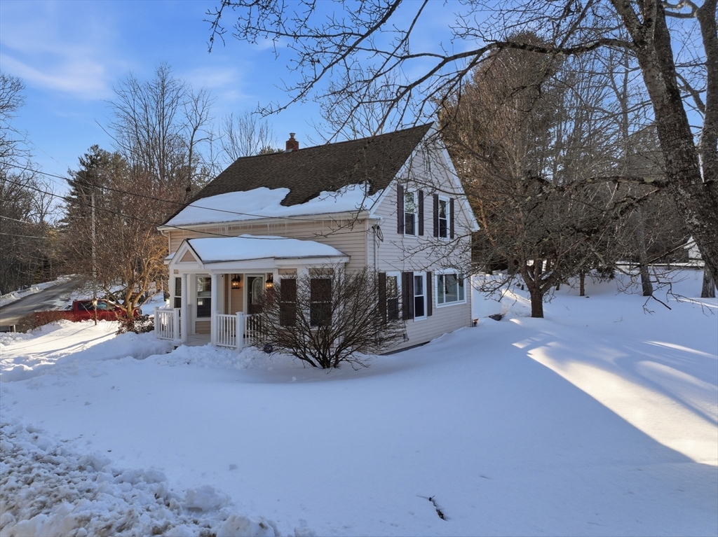 Beautifully updated 3-BEDROOM CAPE blending historic charm with modern comfort. All windows updated! Architectural roof. A walk in closet in the main bedroom and the 2nd bedroom. Additional renovations include 3 versatile heat sources: a 3-ZONED BURNHAM MPO 3 pass boiler system with dual tanks, efficient MINI-SPLITS up and down for heating/AC, and a HARMAN PELLET stove for cozy, economical warmth. The kitchen impresses with updated appliances, SHAKER cabinets,KOHLER fixtures, and a convenient POT FILLER over the range. Relax in a CLAW-FOOT SOAKING tub in the full bath, enjoy integrated surround sound, and rely on uninterrupted power with a GENERAC GENERATOR. Outside, a covered veranda overlooks mature plantings and meticulous IRRIGATED landscaping, while a handy shed provides extra storage. Stylish finishes, smart systems, and a convenient location make this Cape an ideal blend of character, comfort, and modern convenience. Quick commute to Holden or Worcester in less than a half hour.