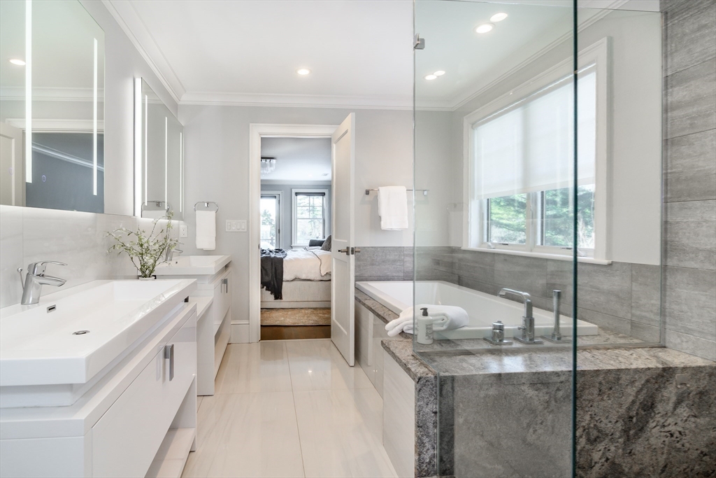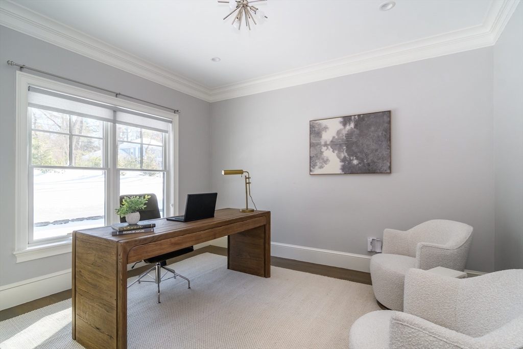 58 Rice Road in Wayland is a custom home built in 2018 with exceptional attention to detail, where timeless sophistication meets effortless modern living. The main level features an airy floor plan with a gracious foyer and sun-filled living room centered around a striking two-sided fireplace that flows seamlessly into the inviting family room. A dining room leads into the showpiece kitchen, complete with a large center island, custom cabinetry, and quartz countertops. A private office and powder room complete the first floor. Upstairs, a dramatic staircase with iron balusters introduces a serene primary suite with a spacious walk-in closet, spa-like bath, and private deck retreat. The second floor also offers three additional bedrooms, including two ensuite and a third with an adjacent bath, as well as a fully equipped laundry room. The finished lower level has a large recreation/playroom space and full bath and opens to a covered patio and lovely yard. Not to be missed!