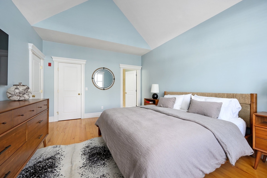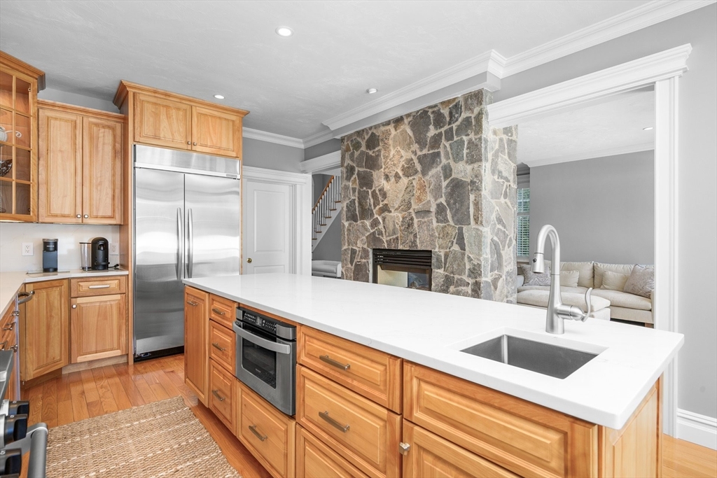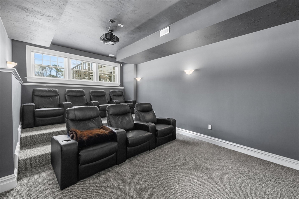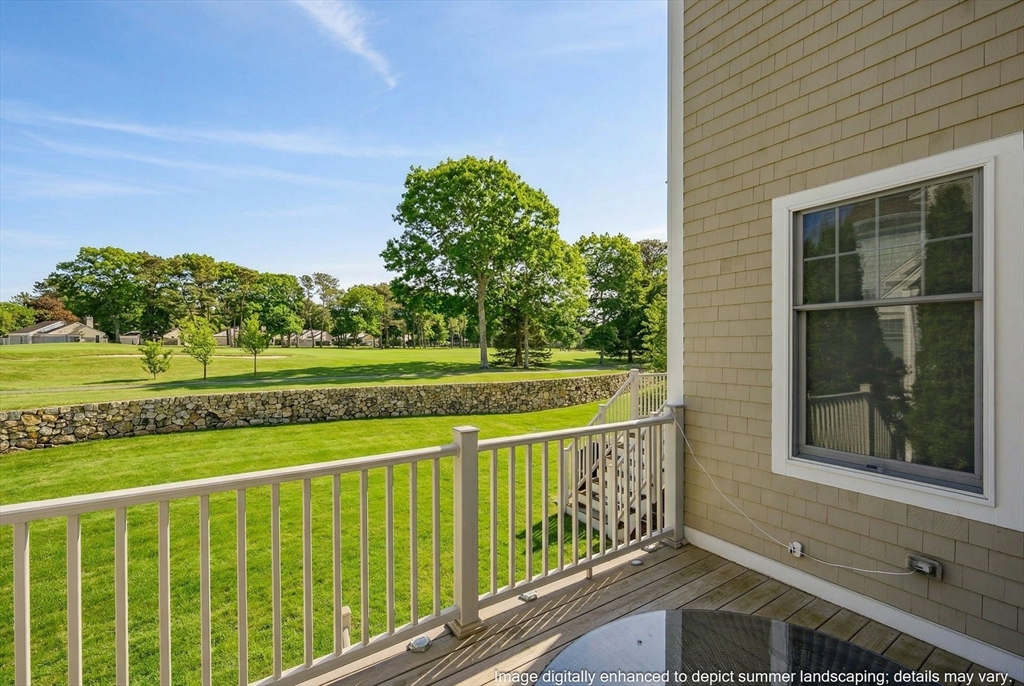 Experience the pinnacle of coastal living at 16 Quinns Way, an exquisite end-unit condominium at the coveted Residences at South Cape Beach of New Seabury. This home masterfully balances architectural elegance with low-maintenance luxury, offering sweeping views of the adjacent golf course. The interior is defined by impeccable craftsmanship, featuring hardwood floors, refined crown moldings, and a gourmet kitchen with a center island. A see-through gas fireplace connects the kitchen to a great room that's ideal for entertaining. The first-floor primary suite serves as a private sanctuary with soaring ceilings and a large walk-in closet. The upper level boasts an en suite bedroom and a lounge highlighted by a tray ceiling with ambient uplighting, while the walkout lower level is finished with a seven-seat media room. Perfectly positioned just a stroll from The Club at New Seabury, South Cape Beach and a short drive to the boutiques at Mashpee Commons.