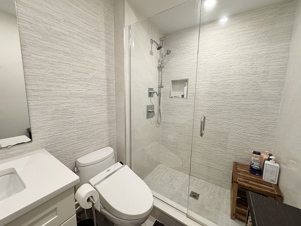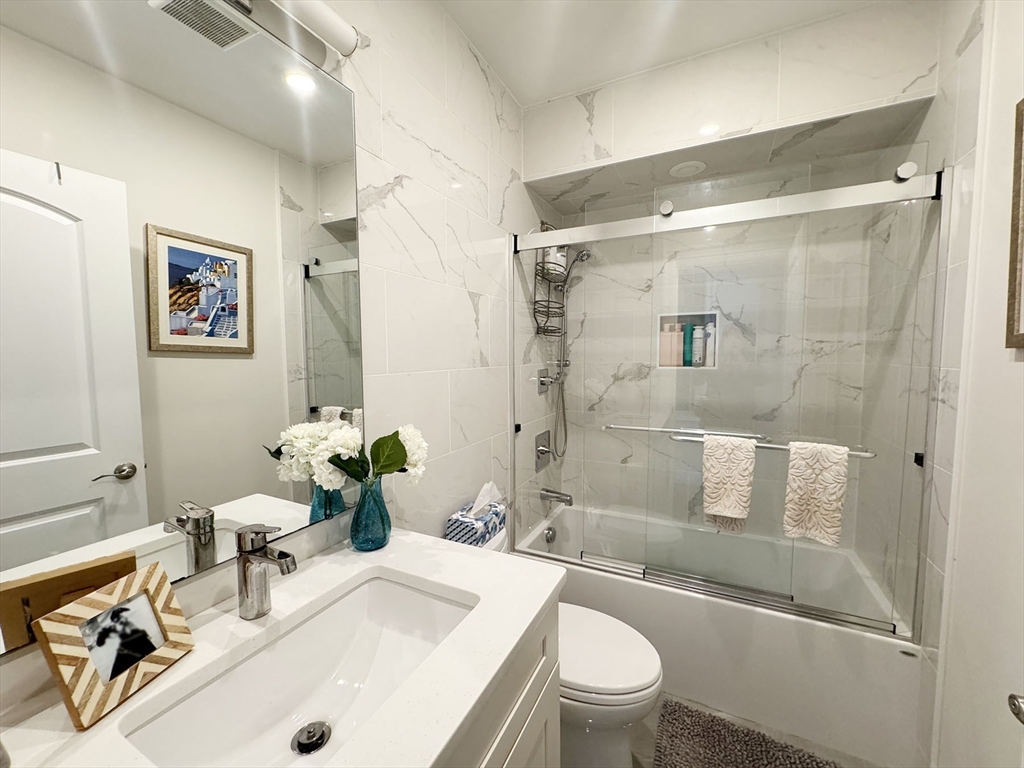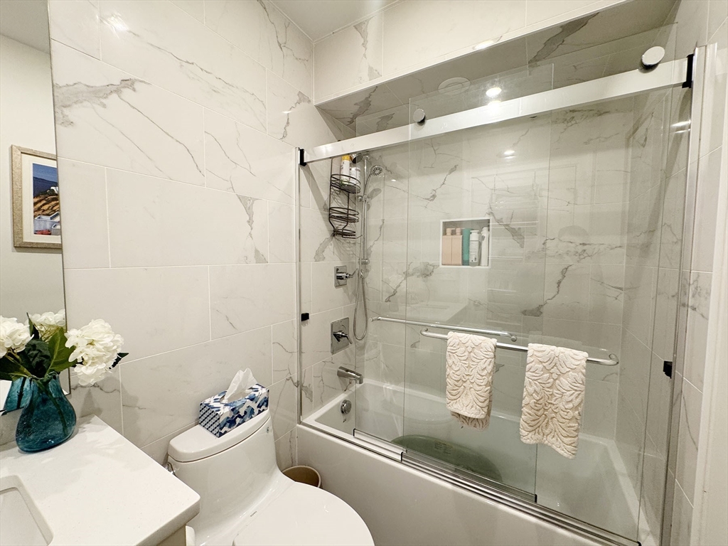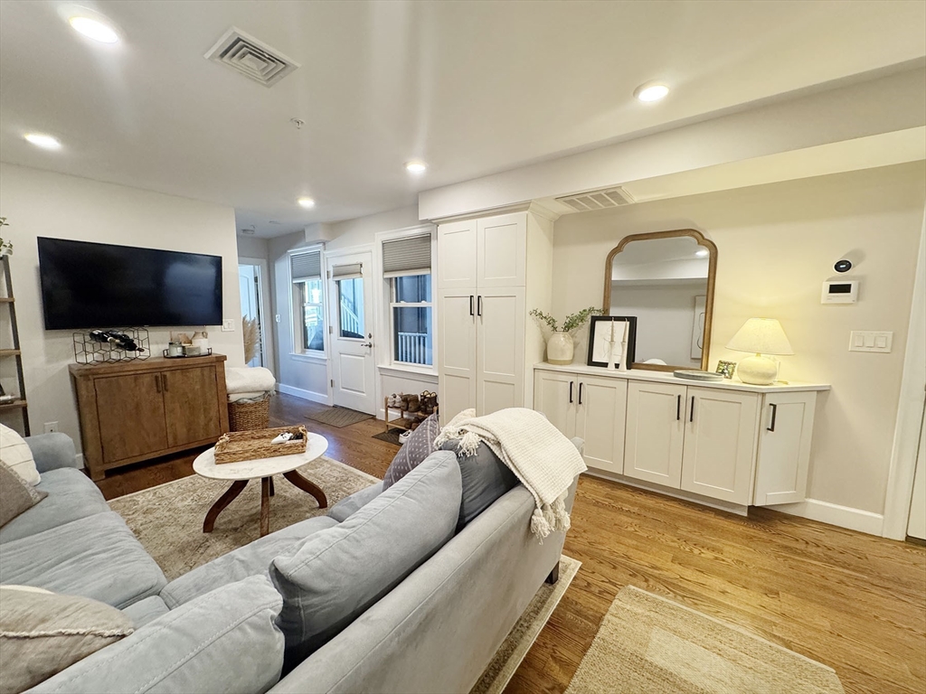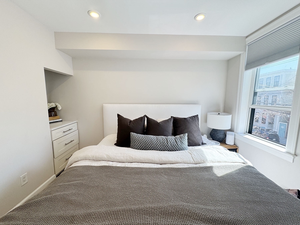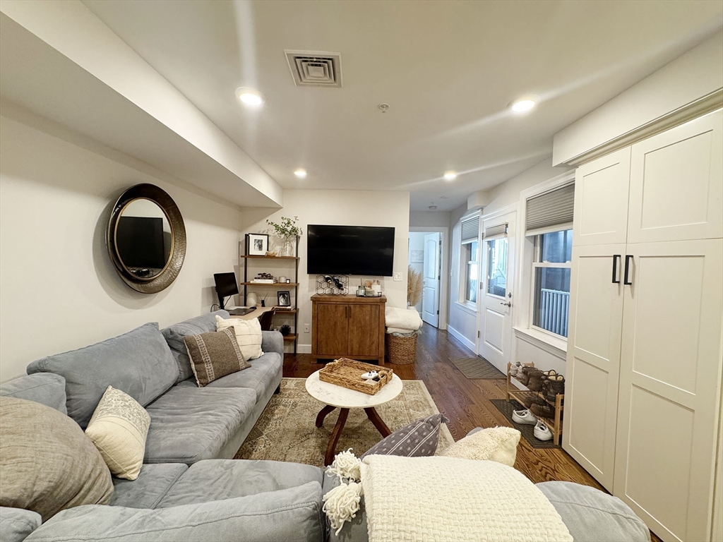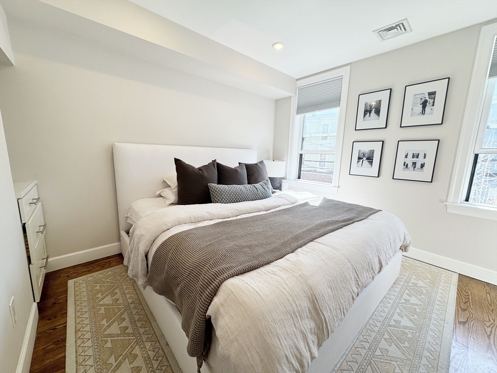 MAY/JUNE:Stunning 2-bed, 2-bath condo places you in the heart of Jeffries Point, just steps from The Quiet Few, the harborfront, and a quick 10-minute train ride to Downtown Boston! Enter to an inviting open-concept living and kitchen area, designed for both comfort and function. Custom cabinetry offers a mudroom-like entryway, while the sleek kitchen features high-end Bosch appliances and quartz countertops—perfect for cooking and entertaining. The spacious living area comfortably fits a sectional and opens onto a charming courtyard-style deck, offering a unique, private outdoor retreat. The primary suite overlooks Sumner St. w/ custom built ins, a walk-in closet, and a beautifully tiled ensuite bath with a glass-enclosed shower. The second bedroom sits at the rear of the unit, next to another full bath and a double closet for ample storage. Additional perks include energy-efficient fixtures, in-unit laundry, and a dedicated off-street parking spot (via 17 Everett Street). Pets negot