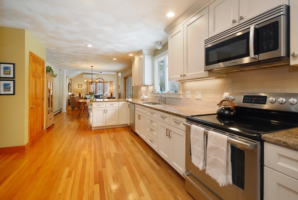 This Elegant Colonial in sought after cul de sac neighborhood is everything you've been waiting for! Generous sized rooms with an open floor plan on the first floor for easy living! Cathedral ceiling family room with wood burning fireplace. The front foyer is flanked by a formal living and dining room, welcoming you into this lovely home. Gleaming hardwood floors throughout the first floor, new hardwood stairs and upstairs in hallway. Rear mudroom and half bath from the garage and back door entrance. Updated kitchen with custom cabinetry, granite counters ,newer appliances, peninsula for quick meals and separate dining area which leads to an outdoor stone patio perfect for entertaining. Spacious primary bedroom has private bath, walk in closet and access to large spa/bonus room over the garage with jacuzzi tub ,built ins, new carpet and storage closets. Enjoy all the quaint town of Boxborough has to offer with year round activities for all, as well as the Acton-Boxborough schools!