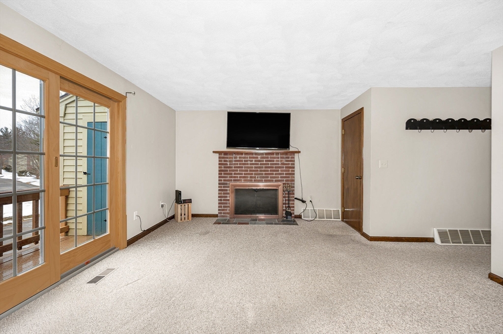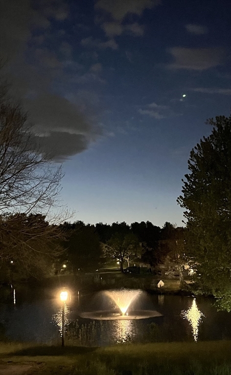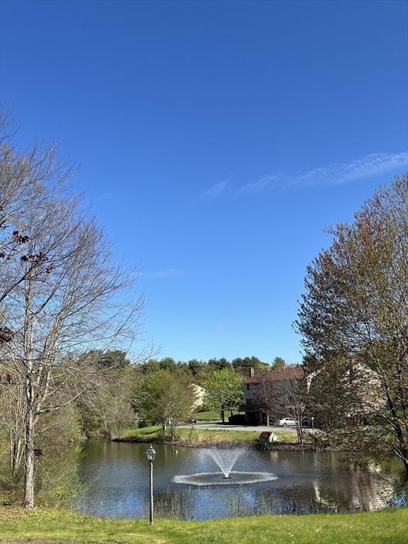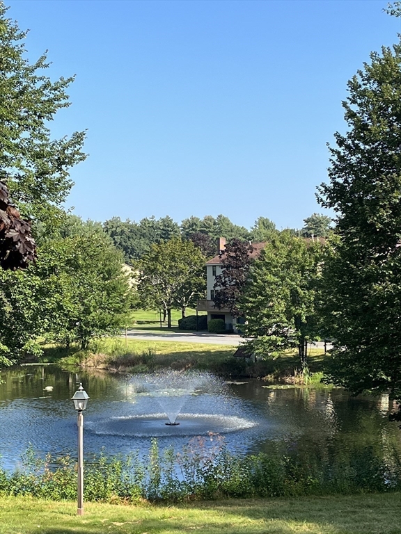 Perfectly situated townhouse overlooking a private pond offers the most desirable location at Indian Ridge. The main level includes an eat-in galley kitchen with gas stove and a spacious open-concept living room and dining room. The living room offers a wood-burning fireplace and sliding doors to a deck overlooking the picturesque pond with fountain. A half bath is also on the main level. Head up to the next level and there are two spacious bedrooms with great closet space and a full bath. Enjoy the views of the pond from your private deck. The spacious one-car garage has direct interior access from basement level. The tennis courts and large clubhouse with full kitchen available for private use both add value to this great unit. This is a pet-friendly condominium association with lots of outdoor areas to enjoy. Seller replaced all windows within the last 5 years. Indian Ridge is a long-established, well-managed and maintained complex. A very nice alternative to a single family home.