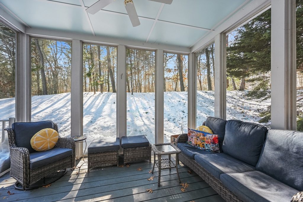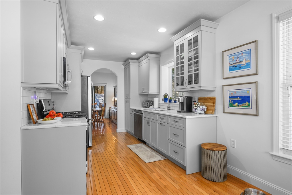 This gracious end unit townhouse in much sought after Stratford Ponds is a terrific value! 1st floor features an entry foyer, a large light & bright updated kitchen w/quartz counter-tops, soft close cabinets, stainless steel appliances, and a comfortable seating area, living room w/cathedral ceiling, skylight, gas fireplace & sliders to a deck, formal dining room w/cathedral ceiling & sliders to a screened porch, a half bath, a laundry & a 1st floor primary with vaulted ceiling, walk-in closet & a private w/walk-in shower. All rooms on the 1st floor have hardwood floors w/the exception of the primary bedroom which has carpet & the baths & foyer which have tile floors. 2nd floor offers a versatile floor plan, including a guest bedroom, family room, a loft that overlooks the living room, a bath and attic for storage. There is a large unfinished basement which could be finished. The unit has gas heat, AC, assoc.pool, tennis, clubhouse & Stratford Ponds has its own sewerage treatment plant