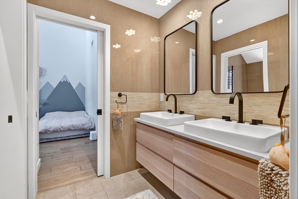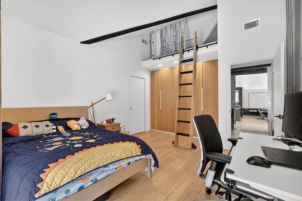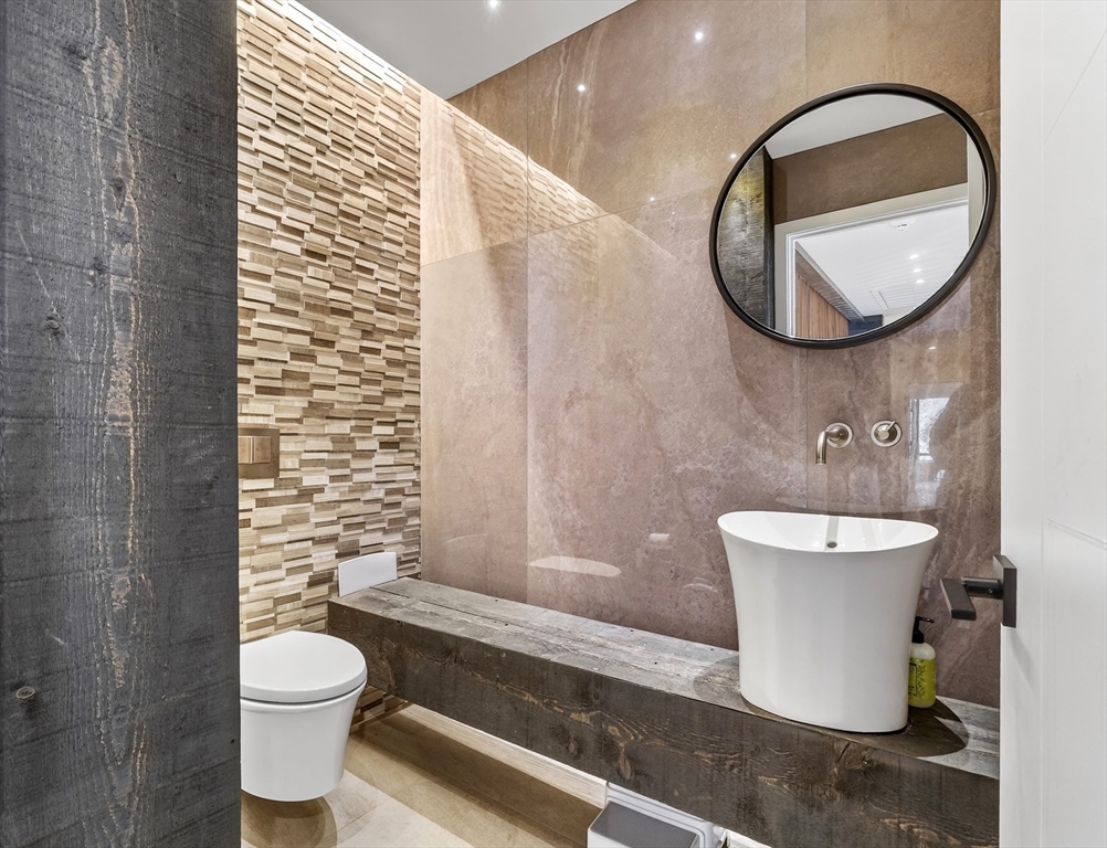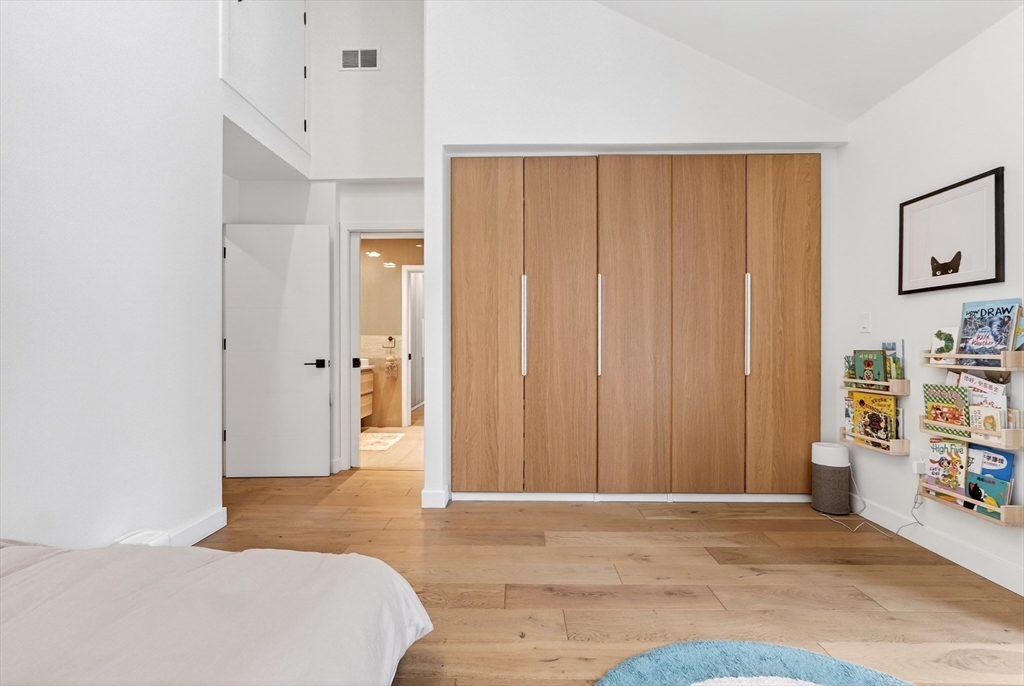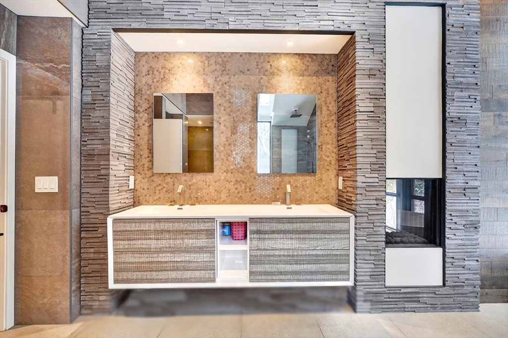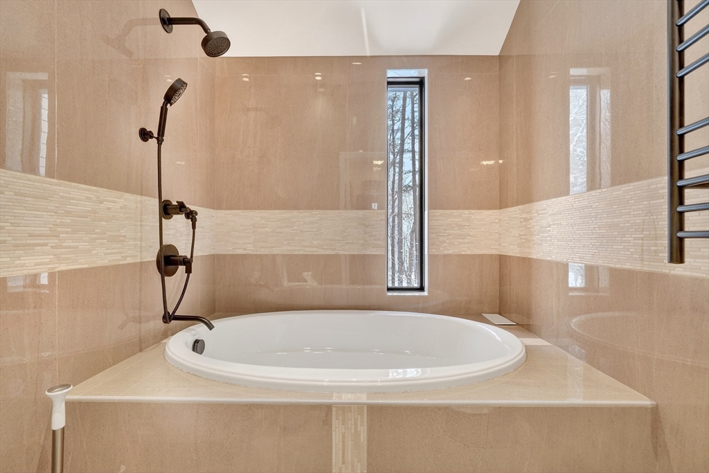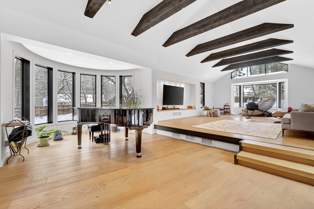 A striking modern architectural residence blending clean lines, abundant natural light, and thoughtful design for sophisticated yet comfortable living, with a quiet and peaceful atmosphere inside the home and private yard. The main level features an open-concept layout connecting the living room, dining area, and chef’s kitchen with high-end appliances and an oversized island, plus a fireplace-centered family room and a dramatic interior courtyard that fills the home with natural light. All four bedrooms are on this level, including a primary suite with private bath, one en-suite bedroom, and two bedrooms sharing a Jack & Jill bath, all with radiant heated floors. The walk-out lower level offers radiant heat, flexible recreation space, backyard access, and a mudroom connected to the garage. A secluded yard provides an ideal setting for entertaining guests. Fully owned solar panels on metal roof. Conveniently located near Weston High School with easy access to Wellesley amenities.