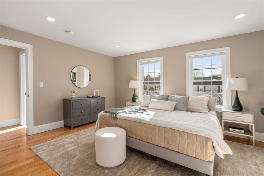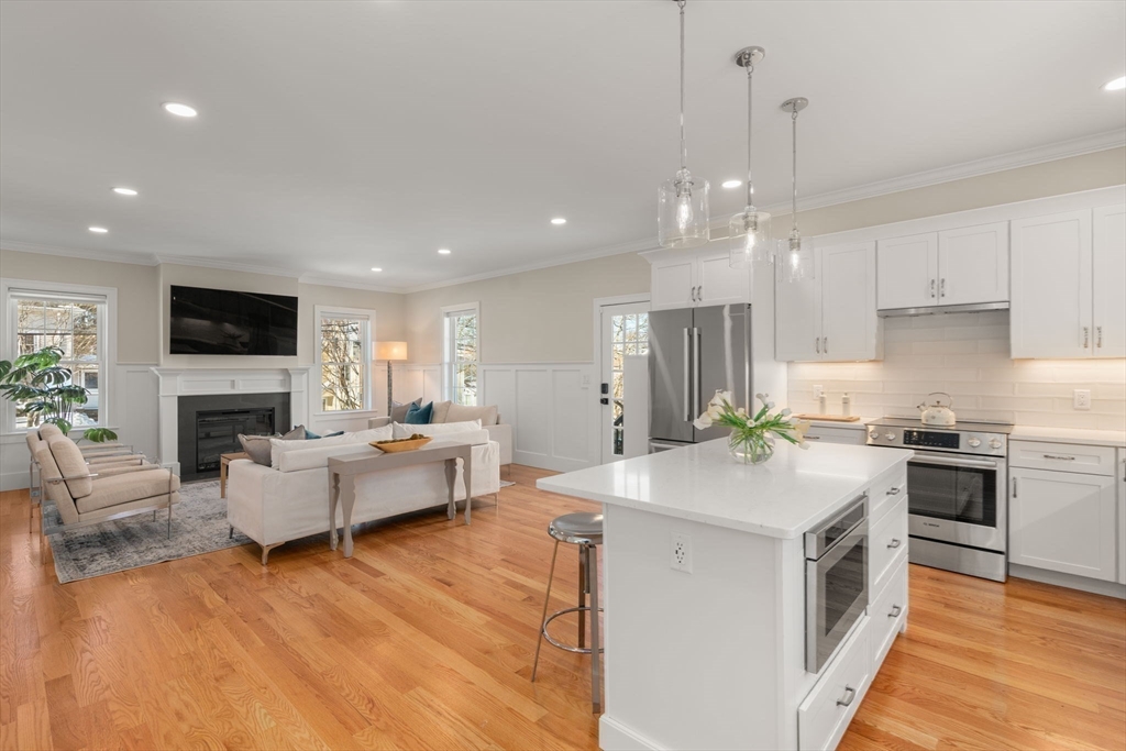 Charming, Like New, centrally located spacious Arlington colonial.Located steps to the Dallin elementary school,this light filled property offers many special features.Wonderful flow with open concept family room and kitchen featuring electric appliances,quartz countetops & electric fireplace.Huge walk-in pantry with shelving.Kitchen/family room open to a deck overlooking the yard.Charming Dining room with built in and special sitting room.First floor bedroom suite with attached full bathroom. Second floor includes a beautiful primary suite with soaking tub,tiled shower with glass surround, double sink vanity, linen closet and walk in closet.3 more bedrooms on this level with a full bathroom with tub.Laundry room on second floor.Finished third floor offers guest room/office space with additional full bathroom.Finished lower level family room with custom built-in mudroom storage.Spacious attached 2 car garage. Amazing location close to Arlington Center, Route 2 access and schools.