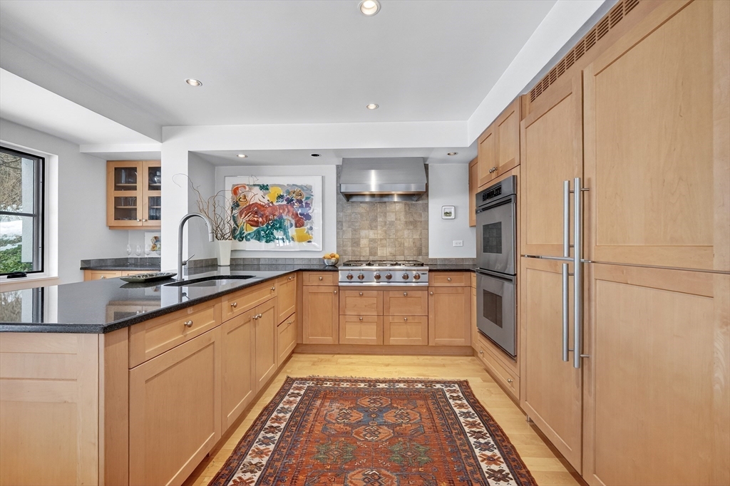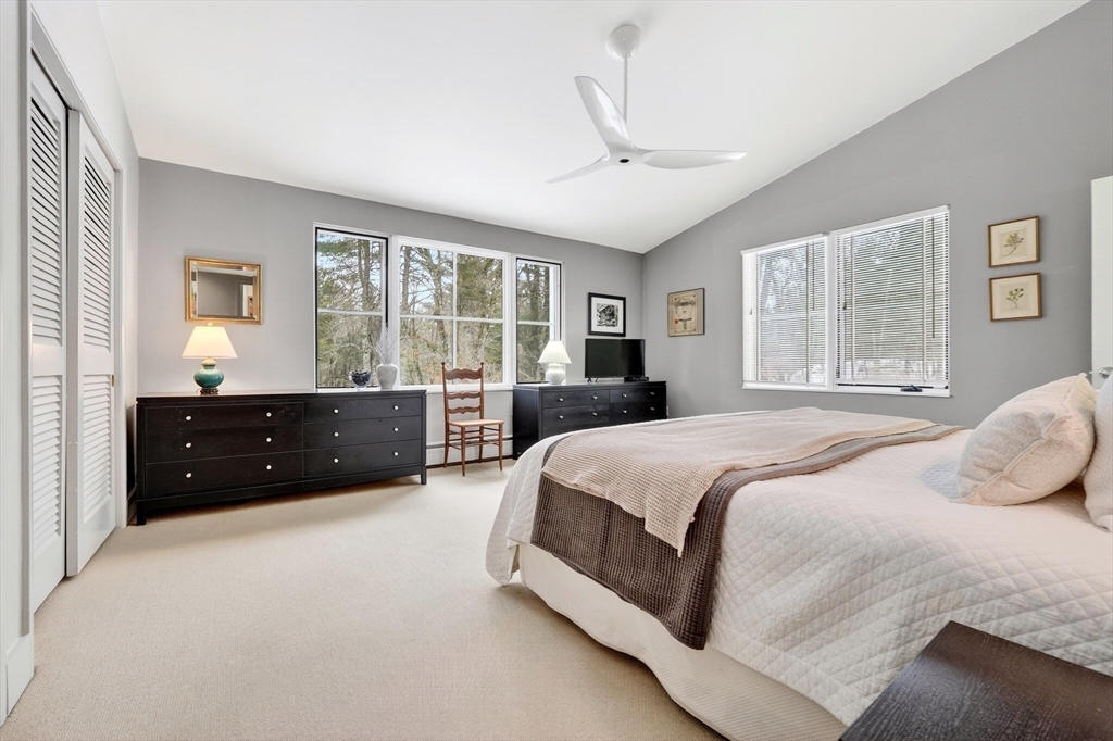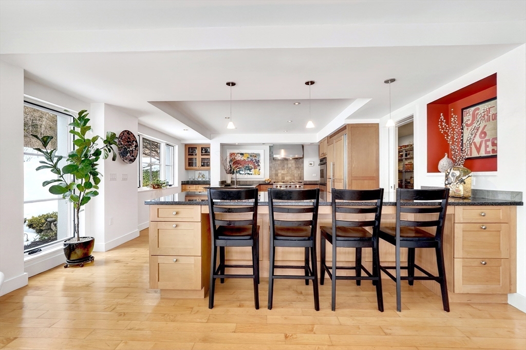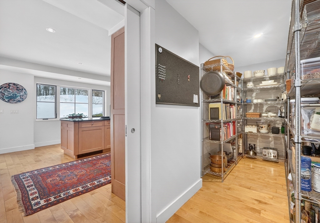 A classic Lincoln gem that feels both architecturally significant and deeply comfortable, this modern retreat is tucked privately - but centrally - off of iconic Weston Road. J. Quincy Adams studied under Walter Gropius and originally designed 45 Weston Road in 1955, integrating simple, modernist aesthetics with the natural backdrop. Recently, respectfully, and extensively renovated: exterior cladding, roof, insulation, and spectacular new windows that frame vistas of the sloping lawn and stone patio. Interior renovations include a true chef's kitchen with a walk-in pantry and a welcoming entry with radiant heat to warmly welcome guests. Upstairs, in addition to three bedrooms, find a home office and a flexible den with a fireplace and mid-century details. Walkable to conservation trails, the historic center of town, the library, and the roadside path to Lincoln's PreK-8 school campus with courts, fields, playgrounds, and pool, yet also easy access to commuter routes and rail.
