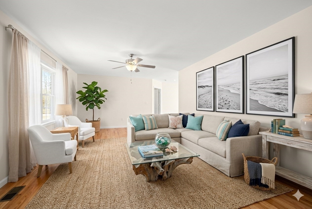 Step into effortless 1-level living in this gorgeously updated 3-bed, 2 full bath, sprawling Ranch in a quaint Wareham cul-de-sac nghbrhd, just a short drive to Swifts Beach! The heart of the home is a massive kitchen with cabinets galore, double ovens & eat-in area, flowing seamlessly into a Family Rm boasting Cathedral Ceilings, a cozy gas fireplace, and dual sliders leading to an expansive back deck creating ideal indoor-outdoor flow while overlooking a generously sized yard ready for summer barbecues, gardening, or quiet evenings under the stars. Brand NEW Hardwood floors shine throughout the main living spaces & a newly Painted interior are complemented by recessed lighting. Main level laundry. The massive unfinished basement offers exciting potential for future living space & unlimited potential. The oversized 2-car garage and backyard shed provide extra storage. Minutes to Main St Shops, Wareham Crossing, Tobey Hospital, Rt. 195. Practicality meets serene coastal living.