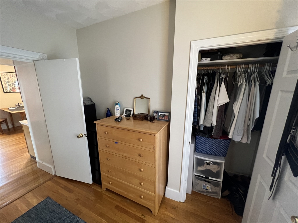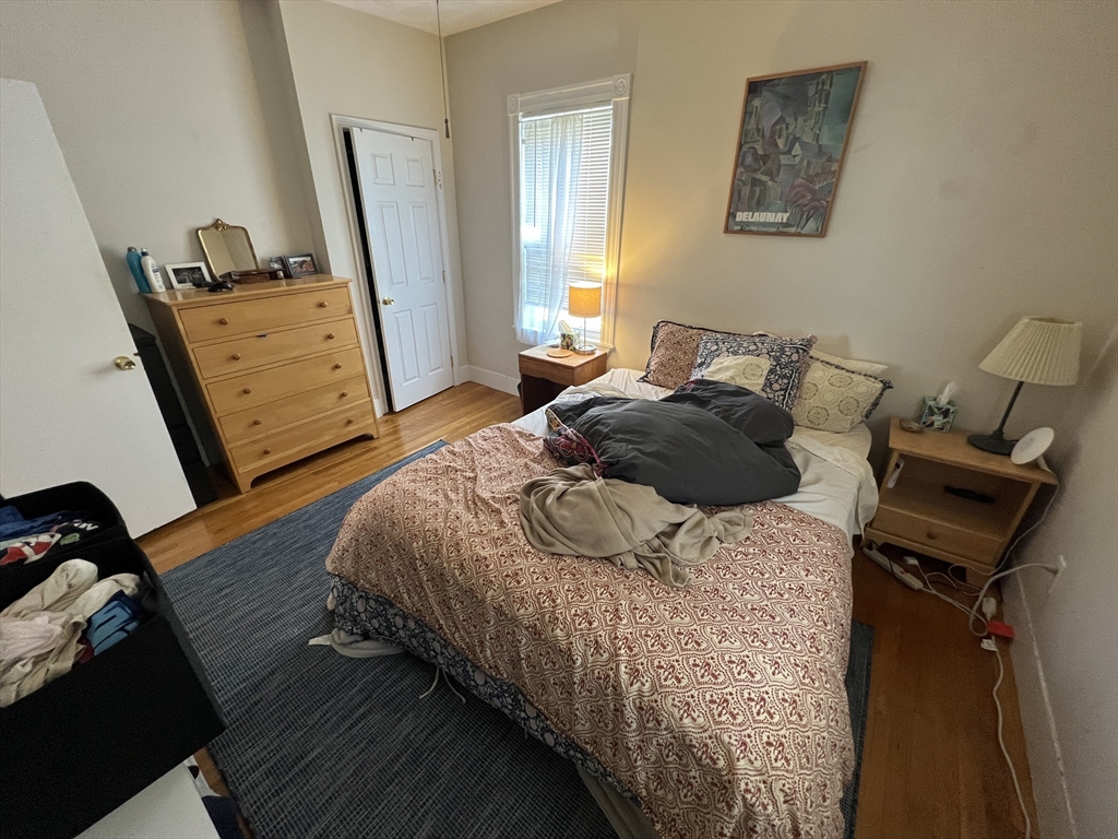 Davis Square. Closest train = Davis Square (Red Line T). 2 bed/1 bath (second floor). Hardwood floors. Eat-in kitchen. Separate living room. Backyard (shared). Front deck and private rear deck. Coin-op laundry in basement.