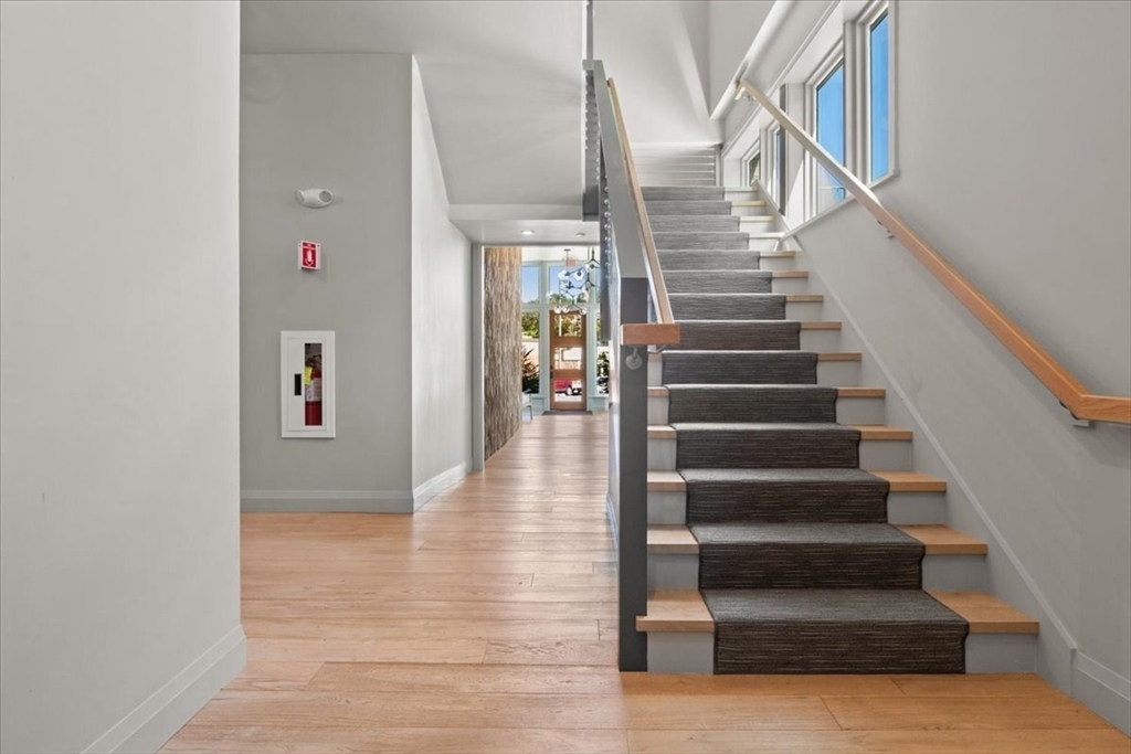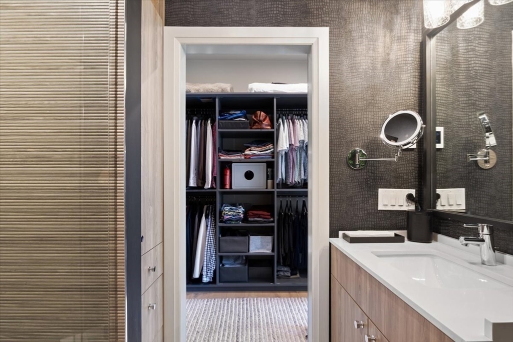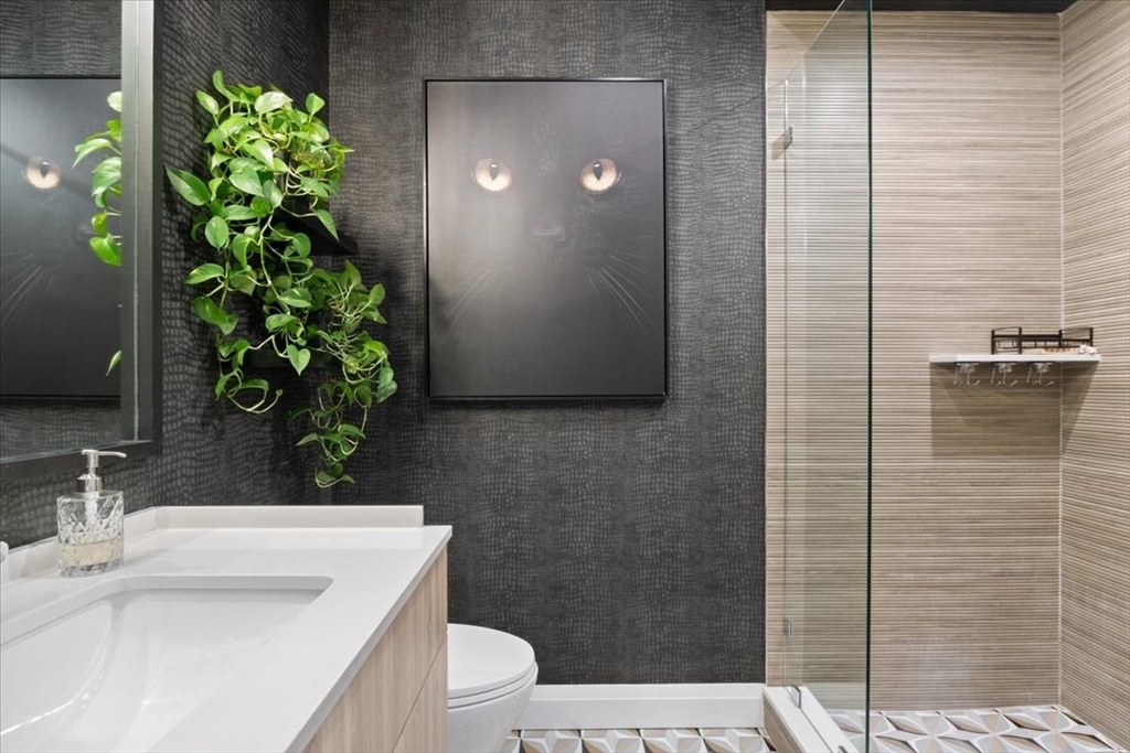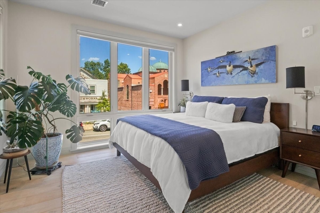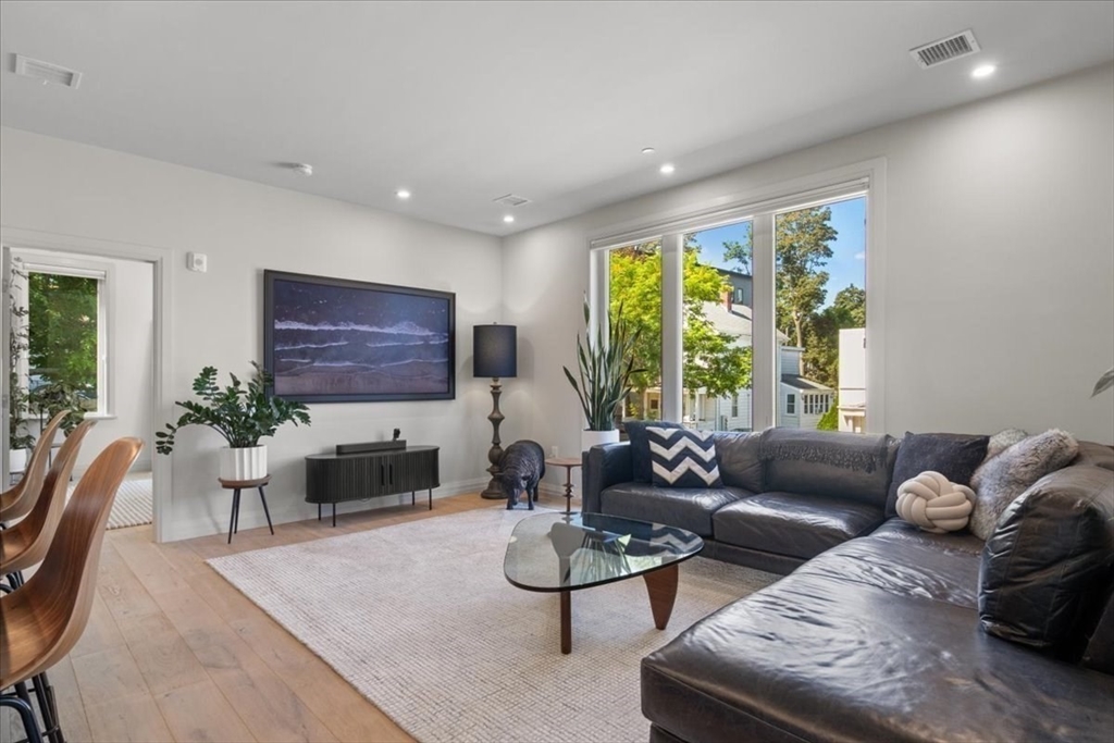 Luxury new construction condo in the heart of Roslindale! This boutique residence blends style and function with its brick façade, metal accents, and warm, contemporary interiors. Step inside the grand foyer with soaring ceilings, teak accent wall, and designer lighting. Filled with natural light from floor to ceiling windows adorned with high-end Stoneside blinds. Featuring wide-plank Sawyer Mason flooring, Cabinet Studio kitchen with vertical grain cabinetry, integrated coffee system, Calacatta Ultra Quartz waterfall counters, and Fisher & Paykel appliances. The primary suite includes a custom walk-in closet and spa-like bath with radiant heated floors, glass shower, and floating vanity. Private covered balcony. Extras include garage parking, storage, and bike room. Beloved farmer's market with fresh produce, unique gifts, music and community. Train stop in vibrant Roslindale Village just outside your door—home to trendy restaurants, local shops, and cozy cafés. Welcome home!