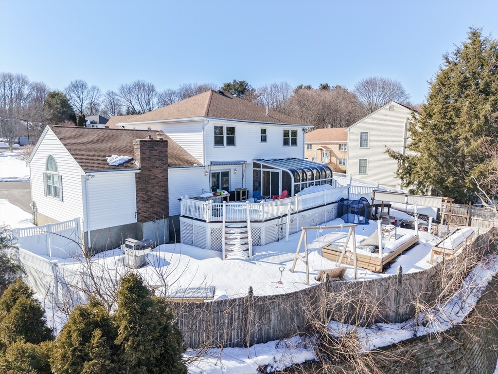 Stunning brick-front Colonial offers 4 beds, 4 baths, and 3,829 sq. ft. of space on a peaceful cul-de-sac in a top-tier neighborhood just 11 miles from Boston. The airy layout features a bright kitchen w massive island and entry to a custom sunroom with radiant heat, perfect for relaxing year-round, alongside a full bath and laundry. Step through the kitchen slider onto a grand deck, or entertain in the expansive 22x24 living room with soaring cathedral ceilings and anchored by a brick fireplace. The main floor also provides a flexible bonus room for a play area or home office. Upstairs, you’ll find a primary suite, plus three generous bedrooms, and an upgraded guest bath with a jacuzzi tub. The lower level adds incredible value with a full guest suite featuring its own kitchenette, family room, bonus room, and bath, plus direct access to a large 2-car garage. Ideally located near I-93/95. Open House on Sunday, 3/15 from 12:00-1:30 PM.